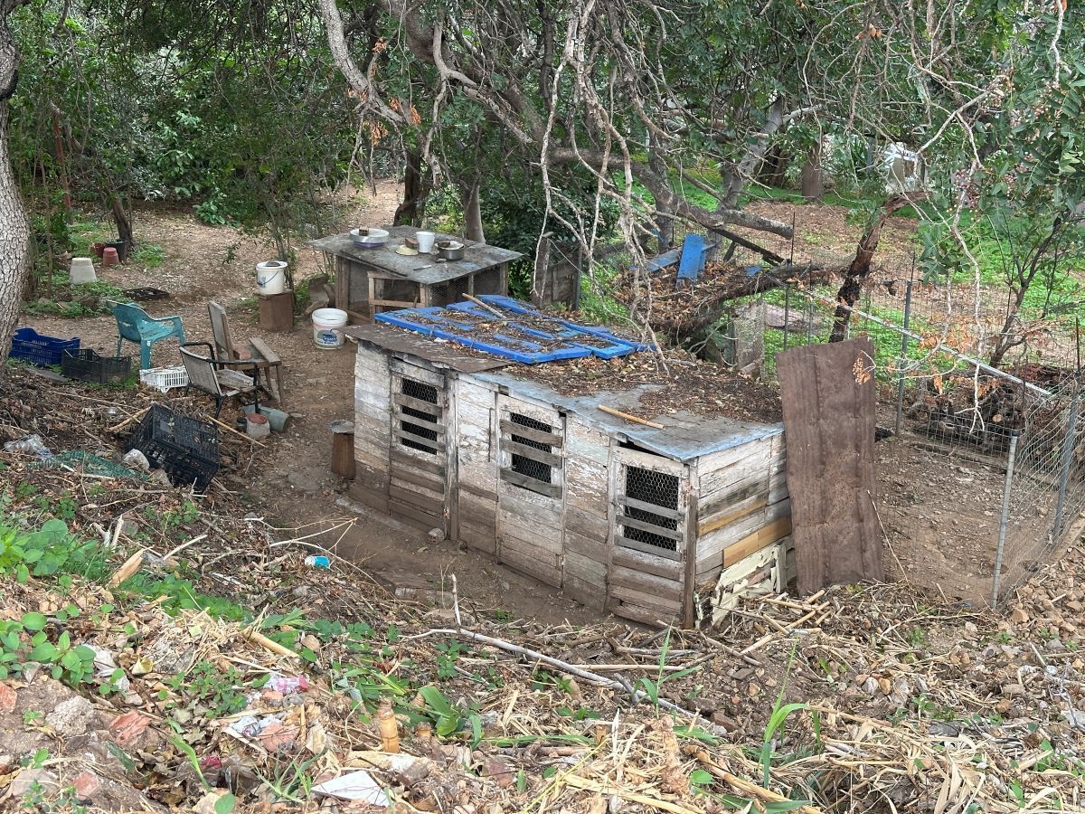 Στο σημείο αυτό, απέναντι από δύο κατάφορτες ελιές η οδός στενεύει με ένα διακοσμητικό λουλούδι στην μια πλευρά και δυό πεύκα από την άλλη, που η ανθρώπινη μικρόνοια ή κουτοπονηριά για να ξεραθούν τα δέντρα, τα έχει τσιμεντώσει ασφυκτικά στην βάση τους.