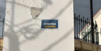 Μια πινακίδα της οδού αριστερά, μια συνάντηση με την οδό Αγελή, δεξιά μας δυό λεμονιές, σπίτια εκατέρωθεν και μνήμες από την εποχή, που όλη αυτή η περιοχή ήταν μια χωμάτινη πλατεία, όπως θυμάται και ο γείτονας Γιάννης Μαχαιράς.