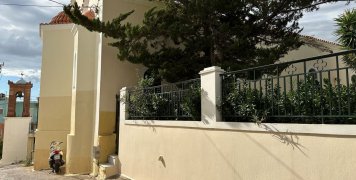Μια οικία δεξιά με μαύρα κάγκελα, το κελί της Εκκλησίας δεξιά μας, το μικρό καμπαναριό και η πινακίδα της οδού πάνω σε αυτό, μια οικία πάλι στα δεξιά μας με μια μουσμουλιά στην αυλή της, μια κατωφέρεια είσοδος για άλλο σπίτι και όλα αυτά στην ουσία πίσω από το Ιερό του Ναού.