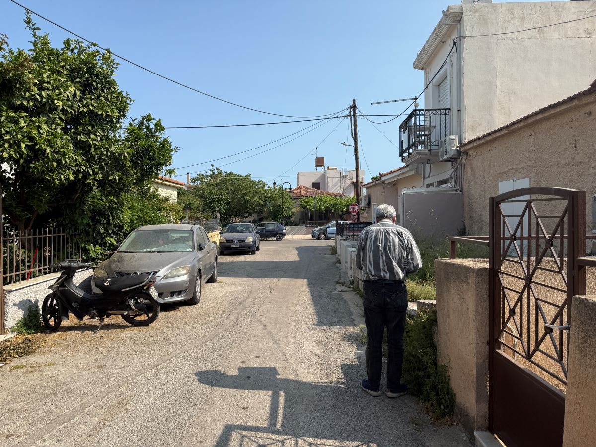 Δεξιά μας δύο προσφυγικά σπίτια με αυλές, ένα μεγάλο κοντάρι με μικρή σημαία για την συνέχεια, εναλλάξ χορταριασμένες και καθαρές αυλές, πορτοκαλιές και γιασεμιά και ένας χώρος στάθμευσης στα ακριβή μέτρα ενός Ι.Χ. κάτω από την τελευταία πινακίδα της οδού.