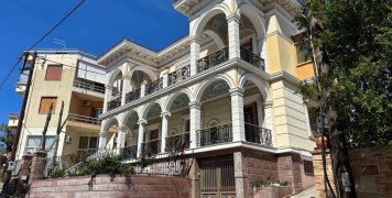 Ένα ερείπιο από την Νοτινή πλευρά κάνει αντίθεση με την θορυβώδη αυλή που φιλοξενεί το 11ο Νηπιαγωγείο και εκείνο άλλη αντίθεση με την είσοδο των Φυλακών, που δεσπόζουν με την… σιωπή τους.
