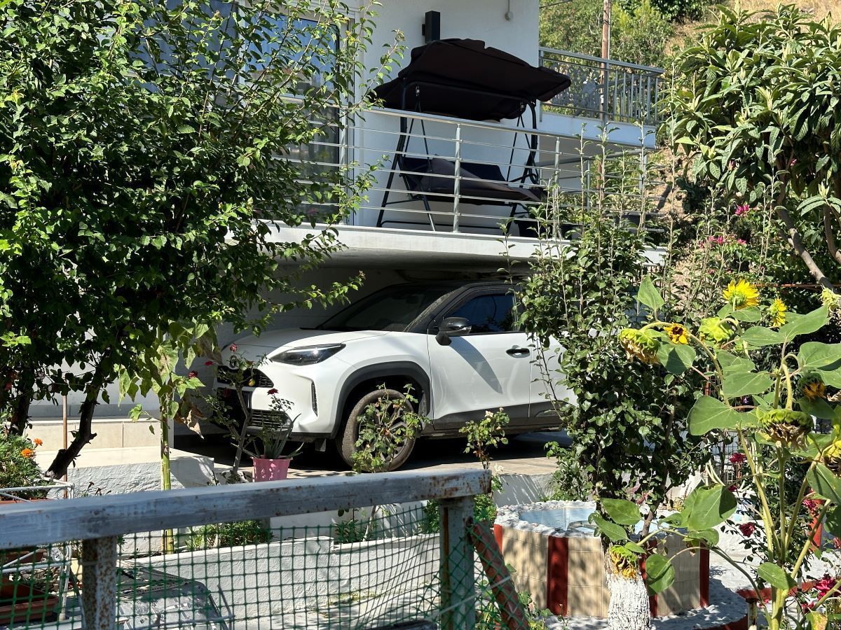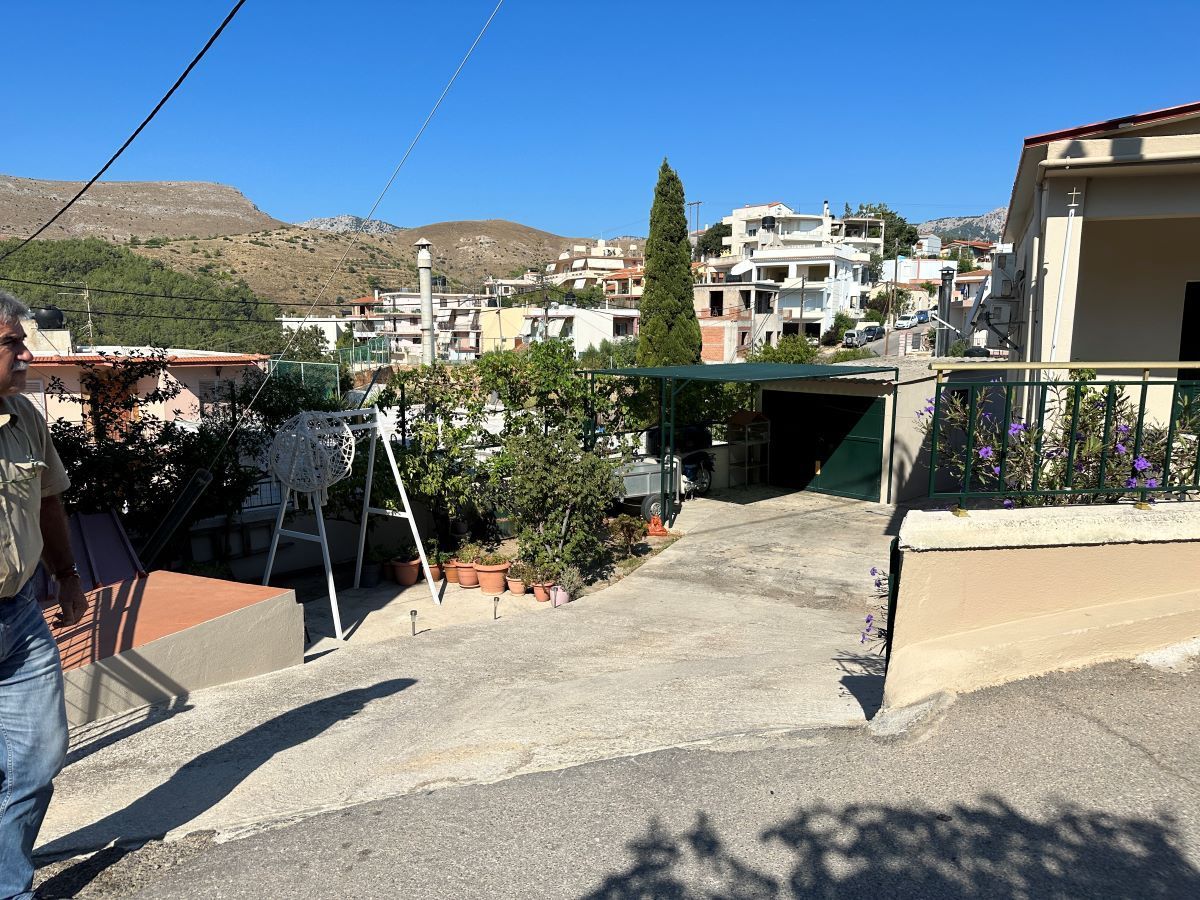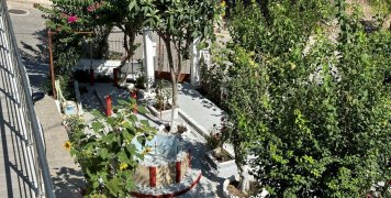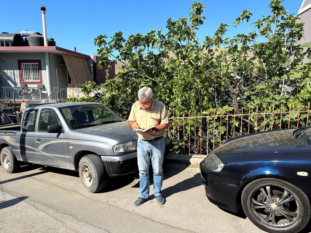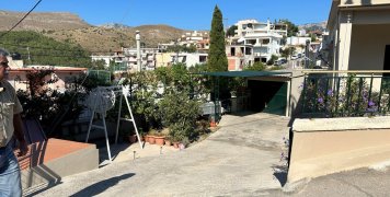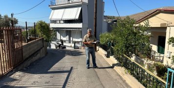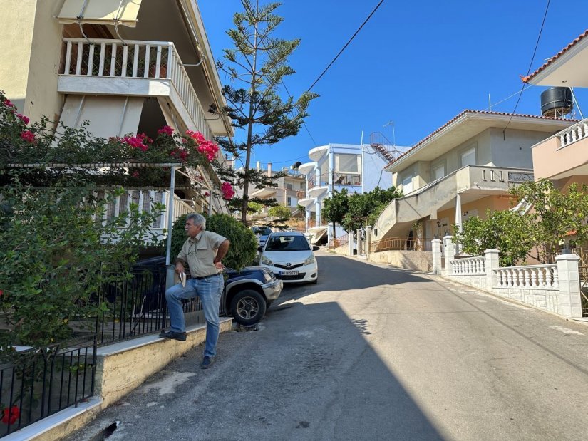 Μια οικία με στοιχεία ΣΜ 1994 πνιγμένη στο πράσινο, πολλοί χώροι στάθμευσης και άλλοι που λείπουν σε σημείο που… ενοικιάζονται, αυλές με πράσινο και τριανταφυλλιές και εδώ η οδός «πνίγεται» από δίκυκλα σταθμευμένα και στις δύο πλευρές ενώ κυριαρχούν οι πινακίδες για απαγόρευση στάθμευσης.