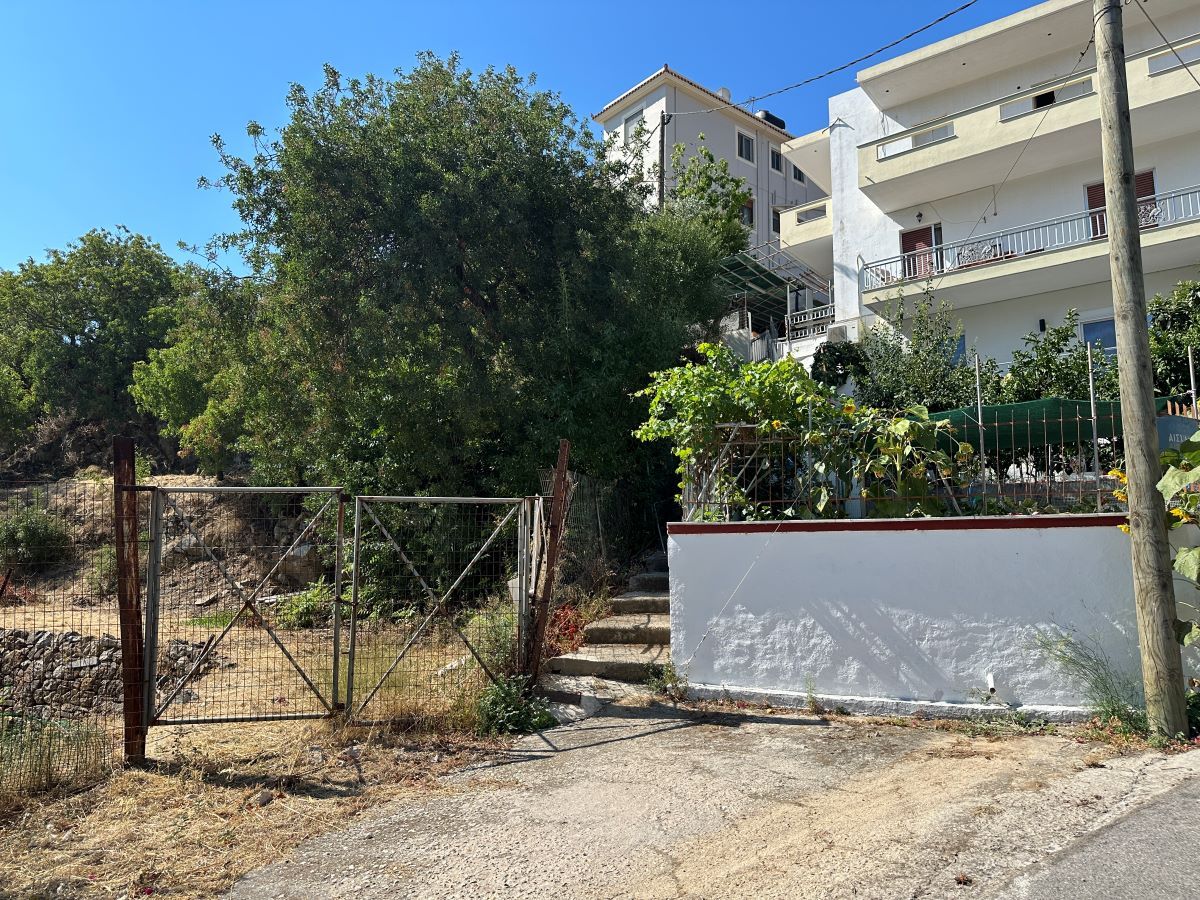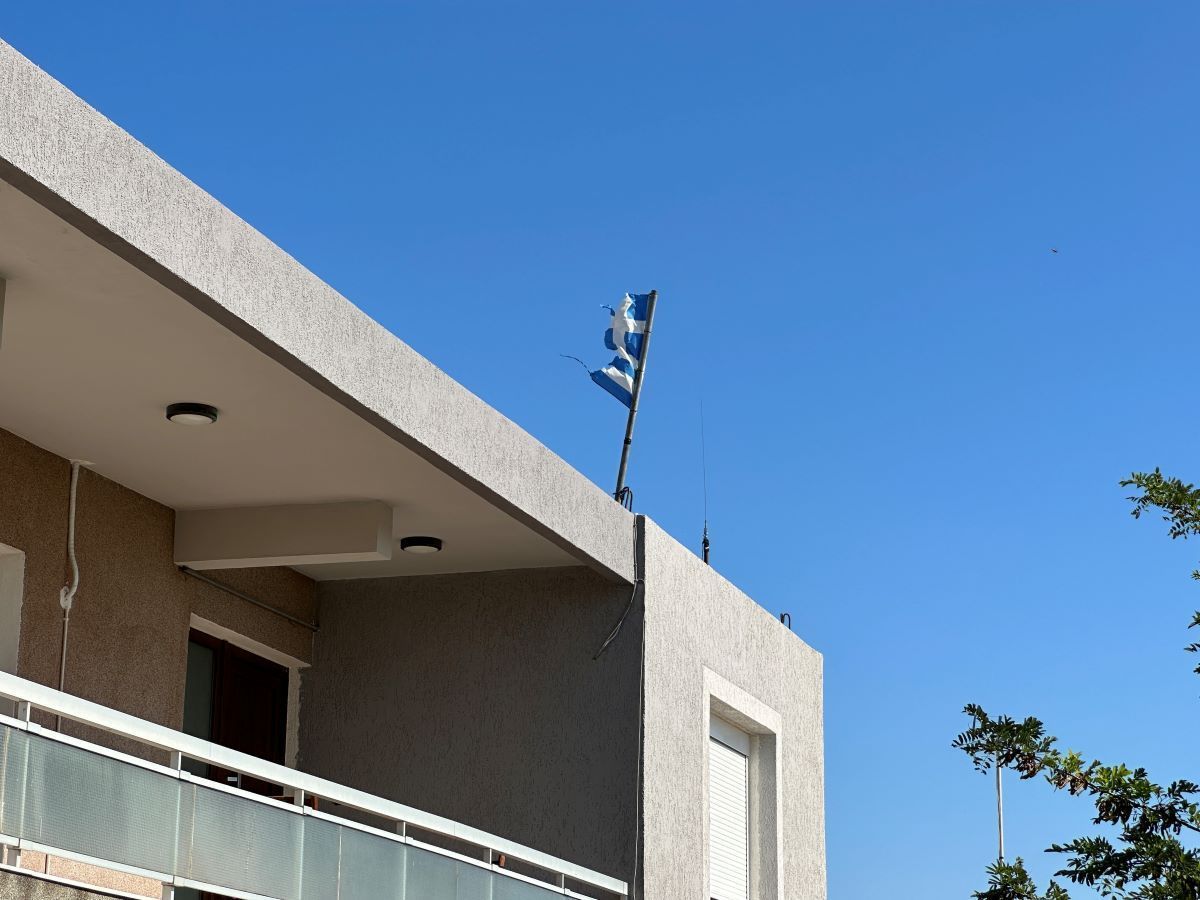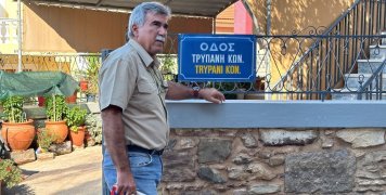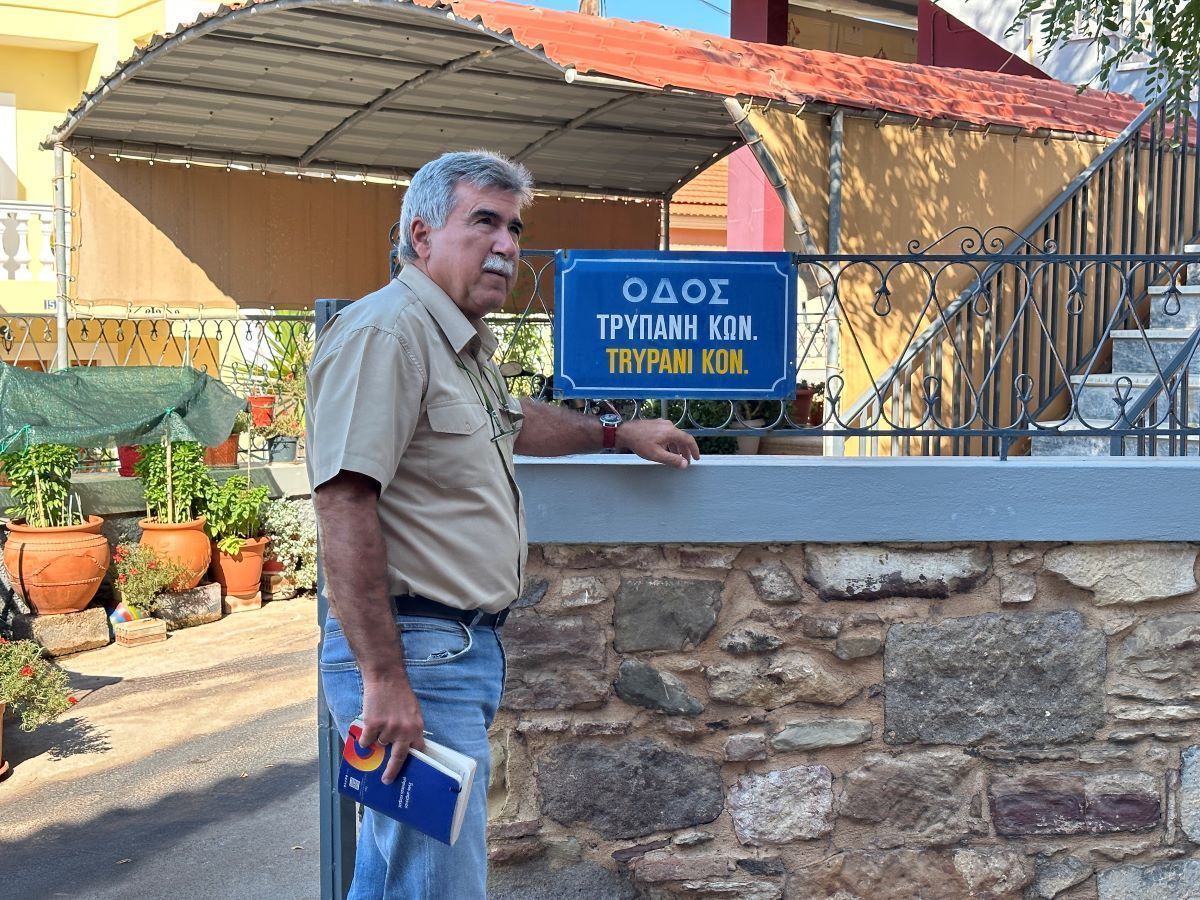Εδώ αρχίζει η κατηφορική της τώρα εκδοχή με μια αροκάρια μπροστά από την… βυθισμένη πόλη στο βάθος, μια σημαία που ξεχάστηκε και εδώ η Κ. Τρυπάνη συναντάται με την οδό Θεοδώρου και από ασφάλτινη γίνεται απότομα κατηφορική και τσιμέντινη.