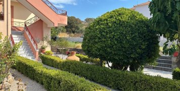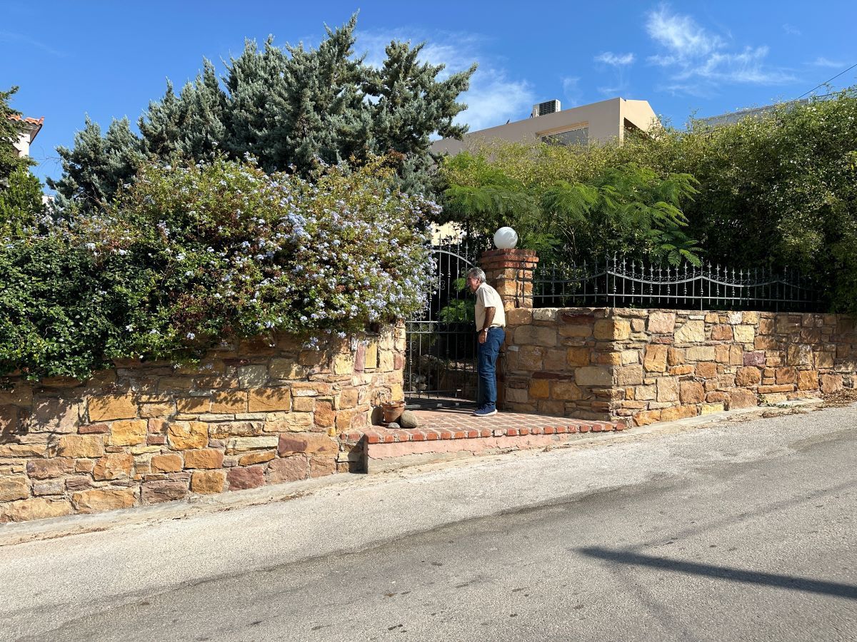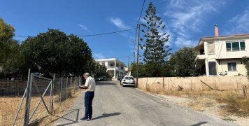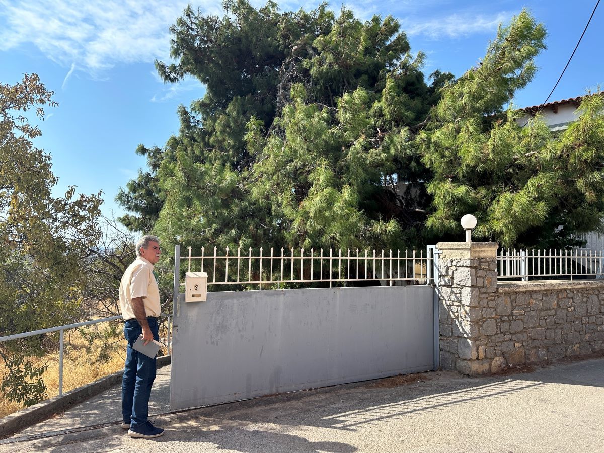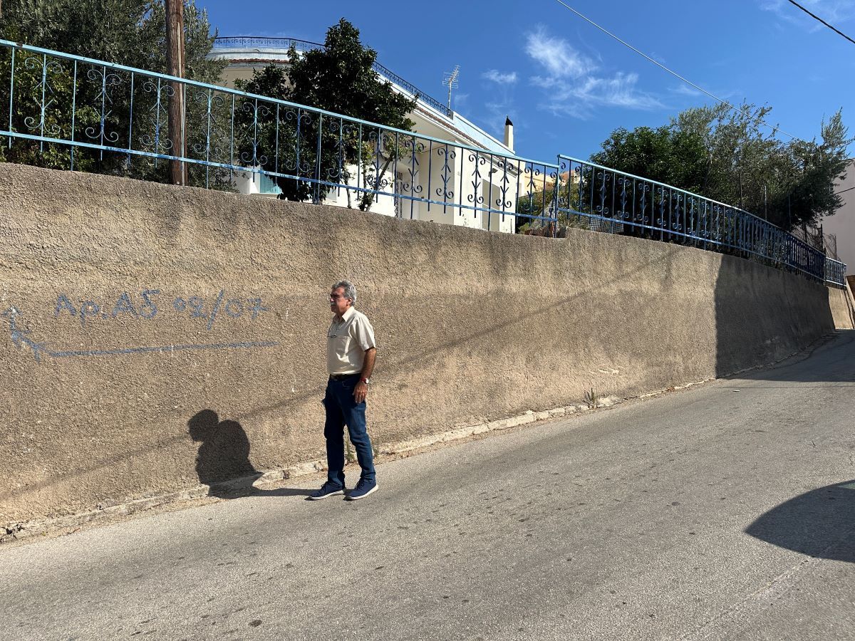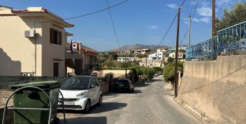 Ένα διώροφο σπίτι στην γωνία, ένα άλλο σκεπασμένο με άμπελο γεμάτο νόστιμα σταφύλια, ένα χωράφι απέναντι με έναν φύκο, ένα διώροφο σπίτι στο ρόζ χρώμα με κολωνάκια στα μπαλκόνια, ένας πεύκος απέναντι σε μια αυλή, φυσικό κλιματιστικό για την διπλανή οικία, ένα άλλο διώροφο με μια σκάλα σε χαμηλότερο επίπεδο και εδώ ο δρόμος στενεύει και παράλληλα γίνεται κατηφορικός.
