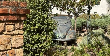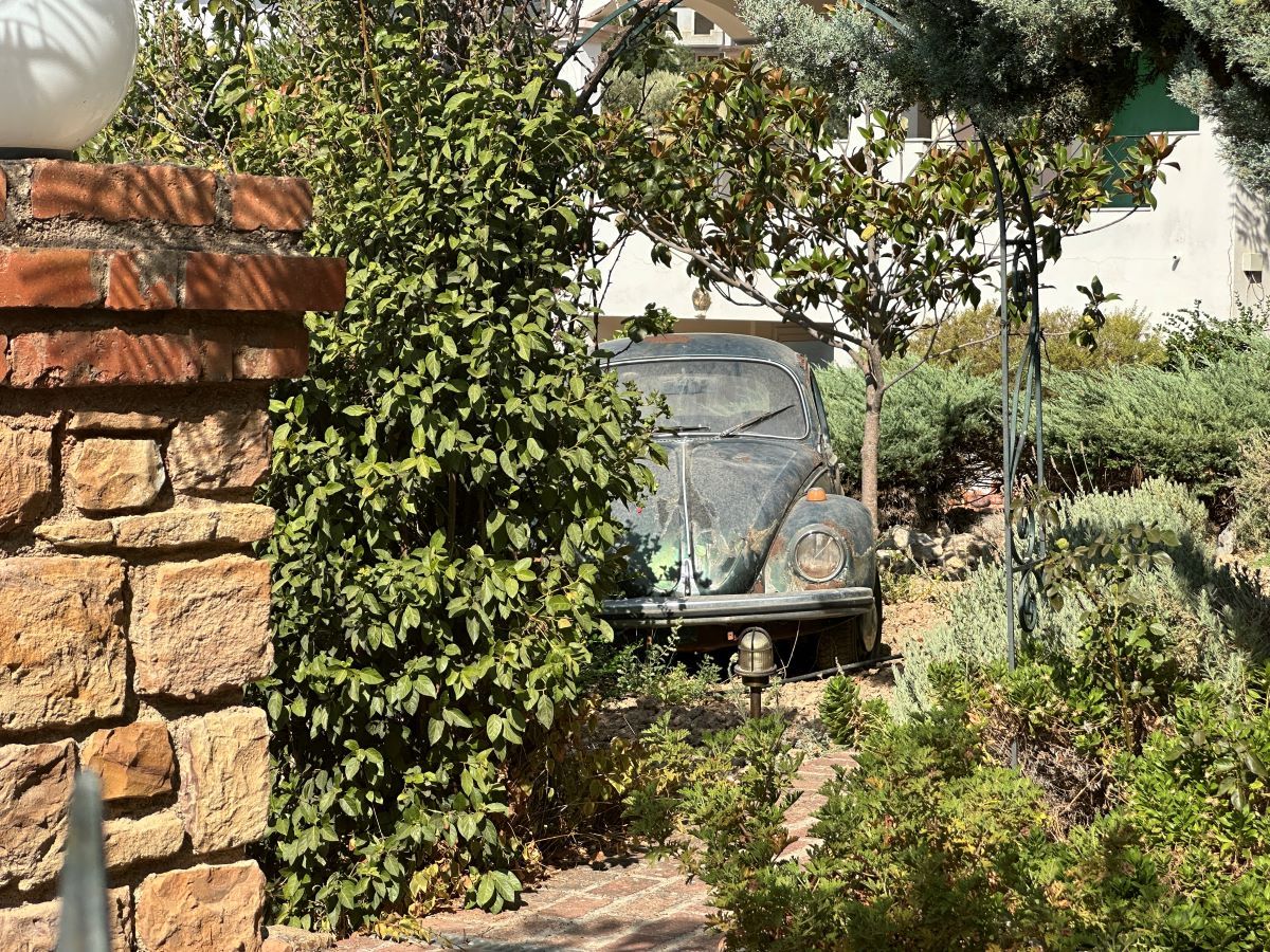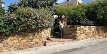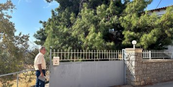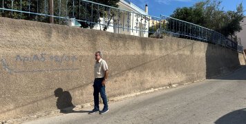 Ένα τοιχίο δεξιά με μπλέ κάγκελα, ένα διώροφο με μια σημαία στο μπαλκόνι, ένα σκιερό γιασεμί, ένα άλλο θαμνοειδές με μπλέ λουλουδάκια, ένας παλιός σκαραβαίος κρυμμένος στην πρασινάδα, κυπαρισσοειδή απέναντι με μια ωραία αυλή, πράσινο παντού στους απέναντι τοίχους, μια πλακόστρωτη είσοδος, με ένα παλιό ποδήλατο, που «γράφει» διακοσμητικά, μια υπέροχη αυλή δίπλα, ένα κυπαρίσσι, που ξεχωρίζει από παντού, σε ένα σπίτι με ιδιαίτερο χρώμα στον αριθμό 14.