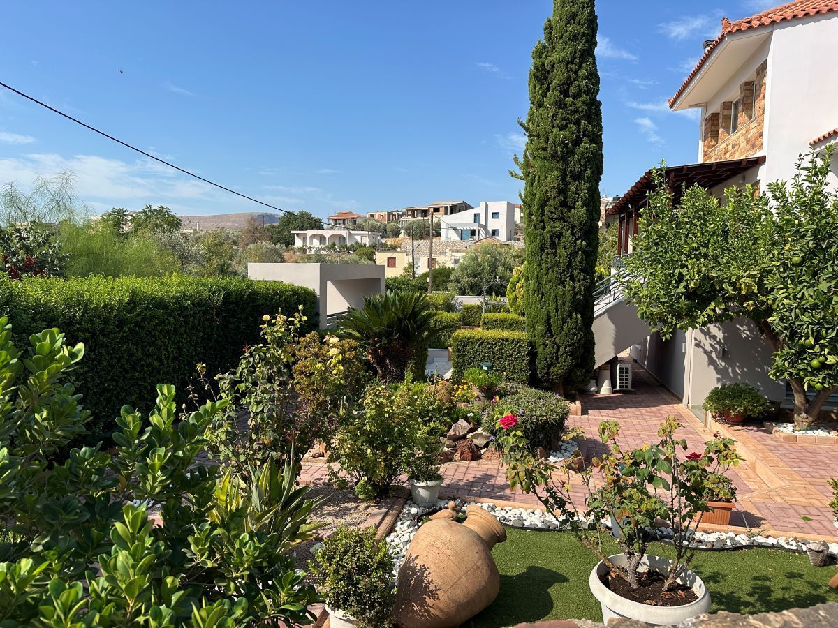 Απέναντι μας προβάλλει ο λόφος του Λατομίου, η ανηφοριά συνεχίζεται ενώ στο βάθος ξεπροβάλει μια αροκάρια, απέναντι από χωράφια με τσικουδιές, ένα κήπο, που φιλοξενεί και μια μινιατούρα εκκλησίας, ένα ΙΧ στην σκιά μιας συκιάς, μια πάροδος της οδού από την Νοτινή πλευρά και απέναντι μια οικία με μαρμάρινη σκάλα και μια αυλή γεμάτη με ροδιές, μια βουκαμβίλια και μια μουσμουλιά.