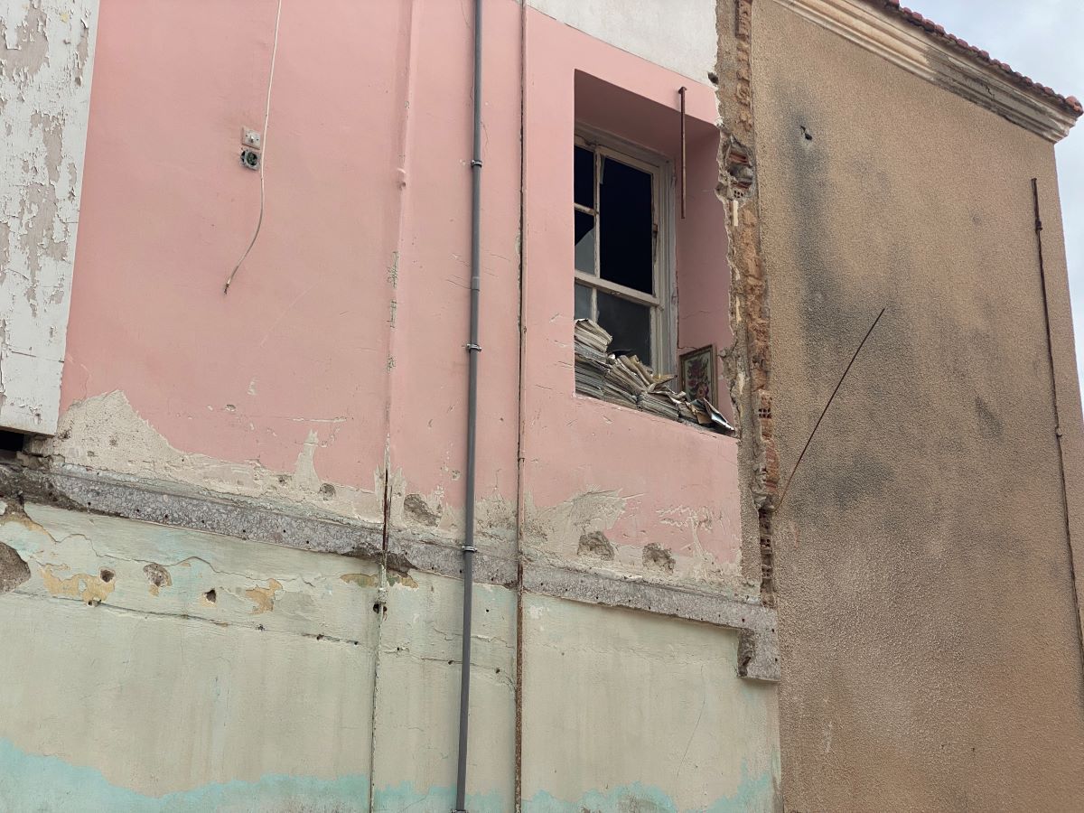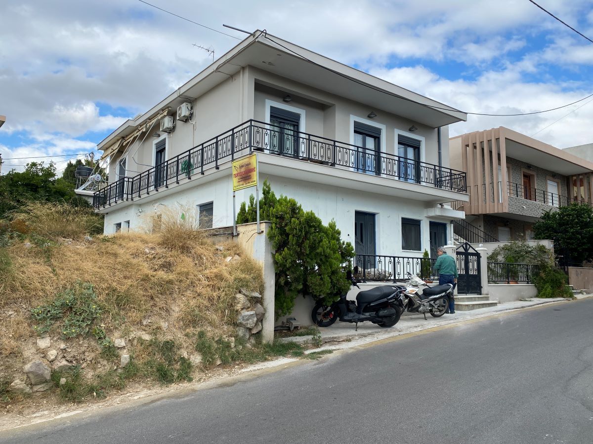 Απέναντι ένα κλειστό σπίτι, με ένα ξεχασμένο για χρόνια Ι.Χ. πίσω από μια κλειστή γκαραζόπορτα και αριστερά ένα αδιέξοδο στενάκι, απέναντι από μια μονοκατοικία και ένα διόροφο ρόζ σπίτι, με επίσης ένα φιλικό φύλακα στην είσοδο.