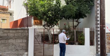 Δεξιά μας μια οικία με τρία σκαλοπάτια στην είσοδο, μια με πέτρινη επένδυση και μια επίσης μικρή πάροδο δεξιά.