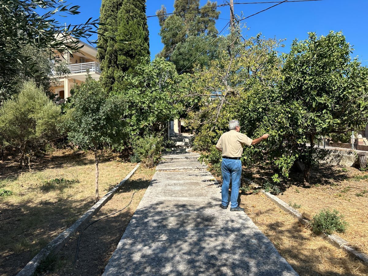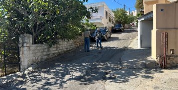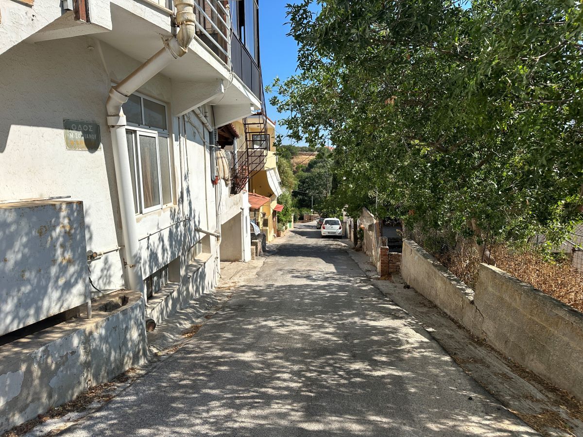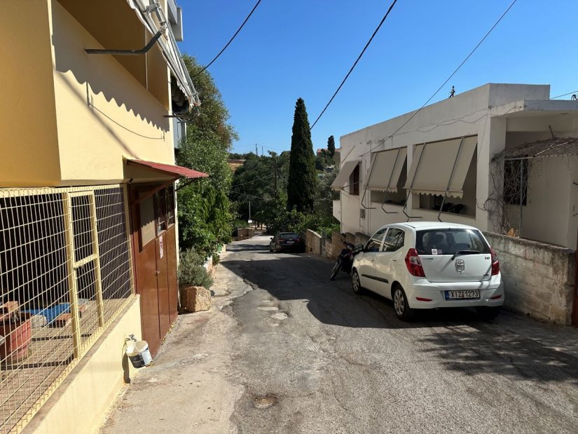 Ανηφορίζουμε με το χωράφι της Εκκλησίας στο βάθος, σπίτια εκατέρωθεν και ένα ξεχωριστό με ένα γιασεμί και πρασινάδα στην πρόσοψη. Γκαράζ για την συνέχεια, ένας χώρος με διάσπαρτα πεύκα, μια πάροδος δεξιά και ψηλά μια περίεργη σιδηροκατασκευή. Ένα παλιό σπίτι, ένα χωράφι με ένα τοίχο προστασίας προς τα…μέσα, μια τσικουδιά και ένα πέτρινο σπίτι στην γωνία.