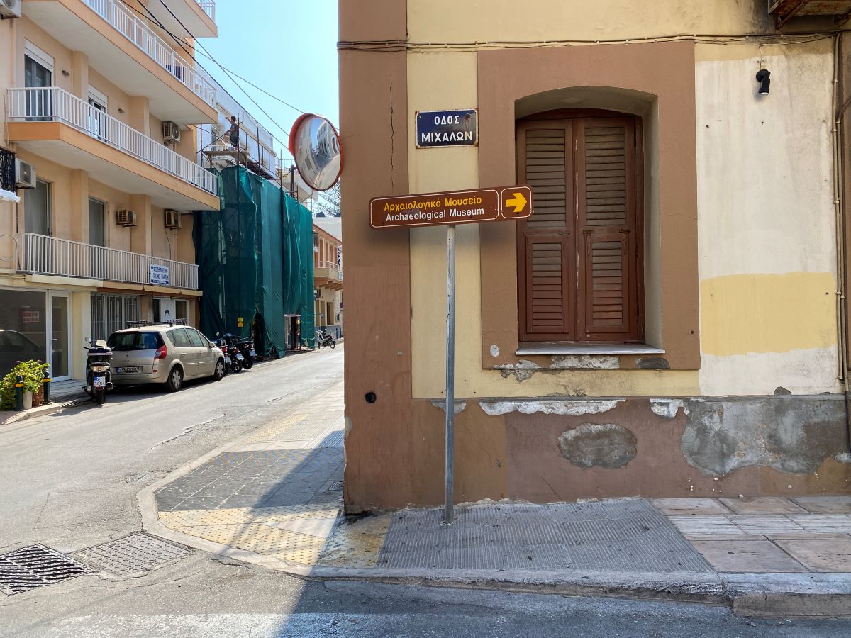 Μια πινακίδα ενημερώνει ότι στην οδό βρίσκεται το Αρχαιολογικό Μουσείο ενώ λόγω της ύπαρξης σημαντικών παλαιών οικιών στην περιοχή ξεναγός μας θα είναι ο μελετητής Βασίλης Αγιαννίδης, που μας δίνει και τα πρώτα σημαντικά στοιχεία για την οδό.