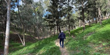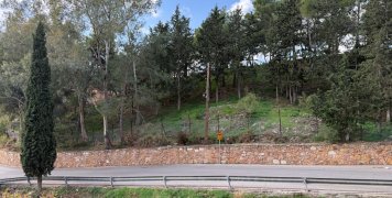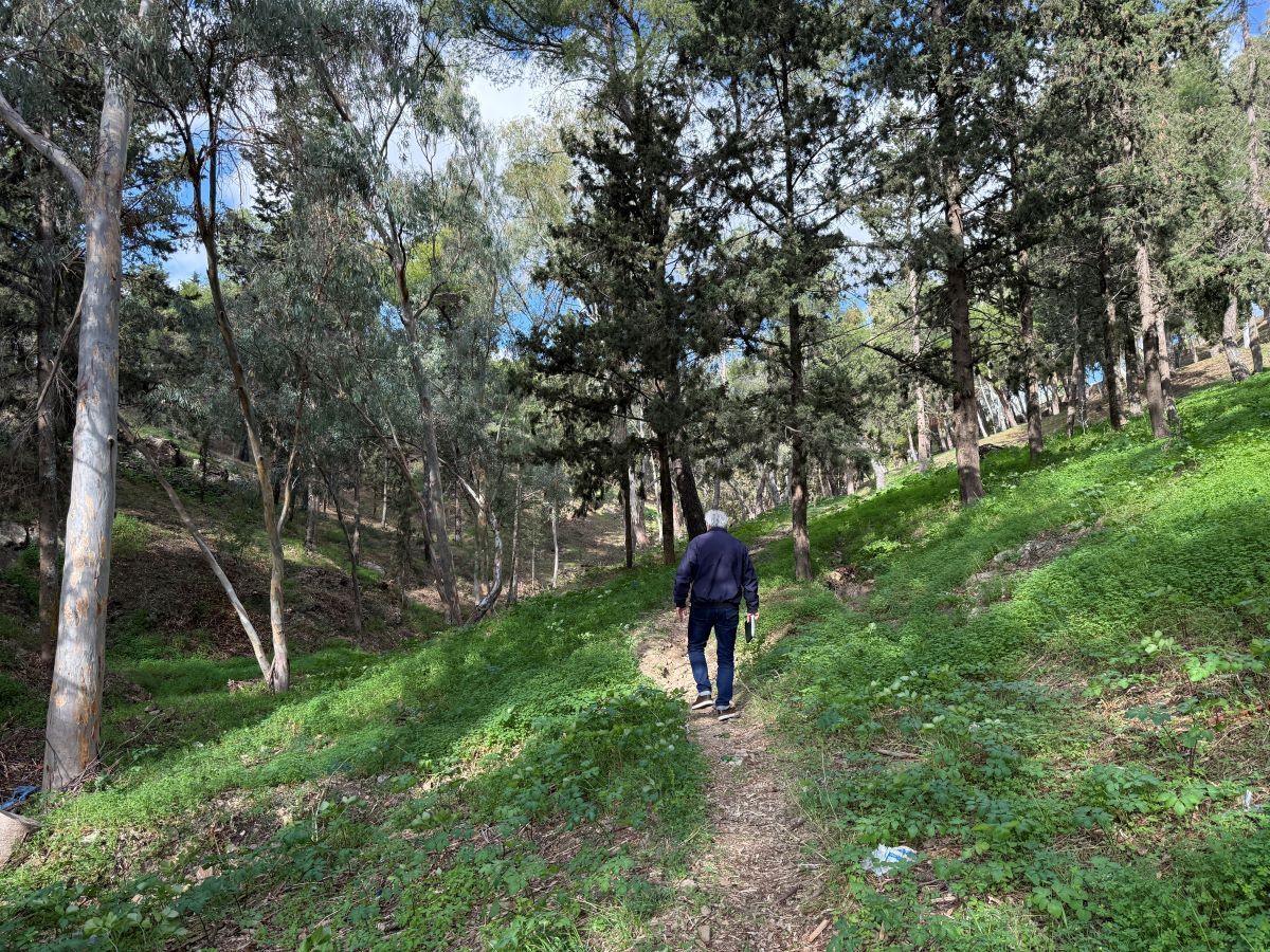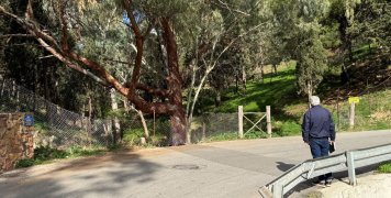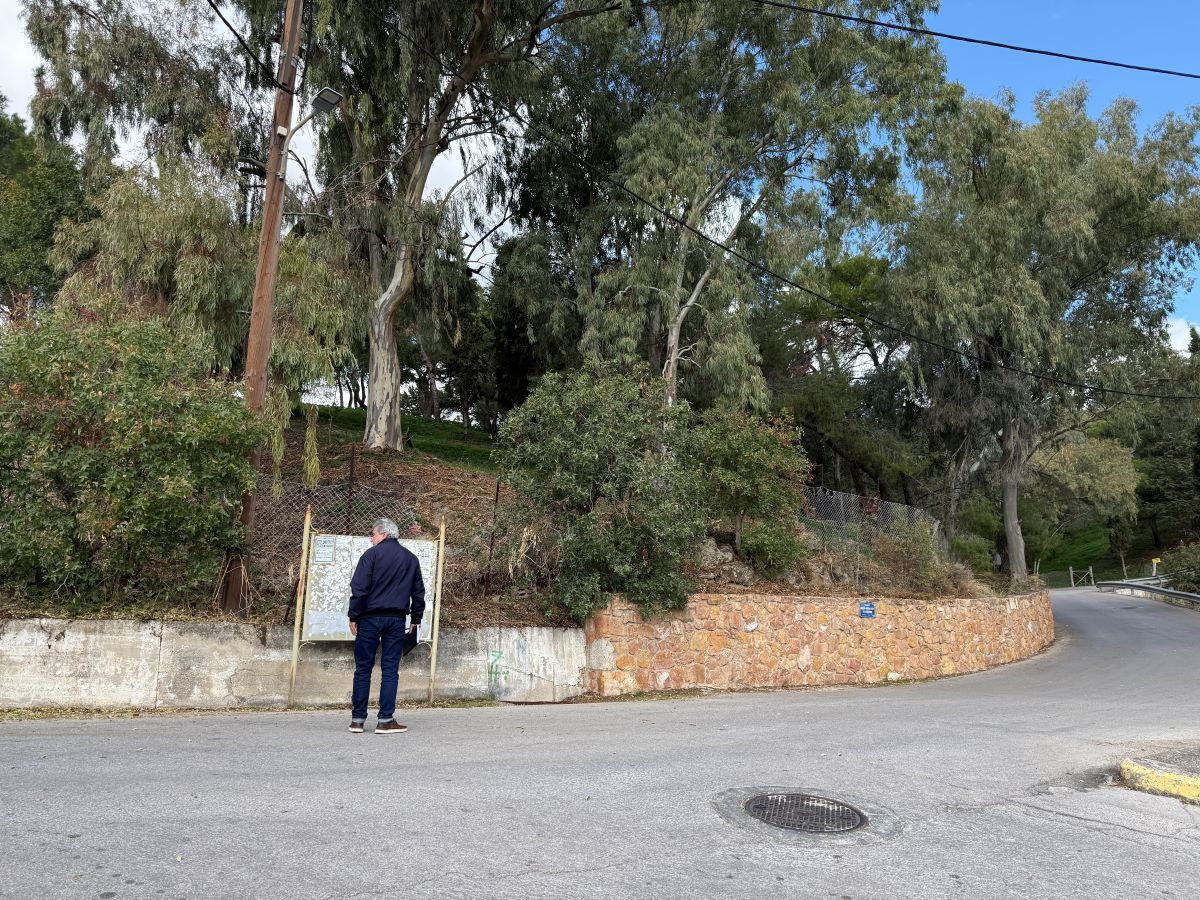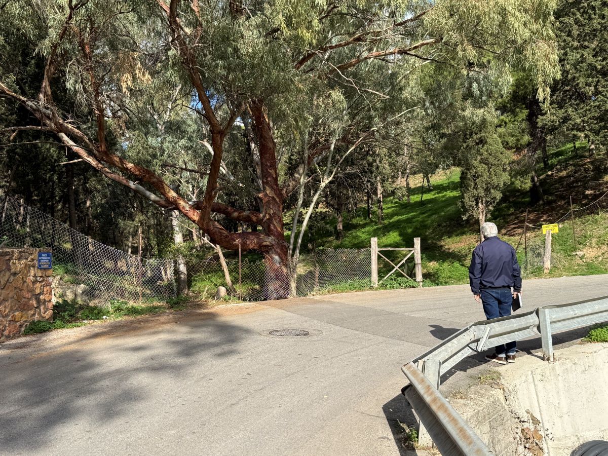 Αριστερά μας το αλσύλλιο, που προς το παρόν δεν έχει καεί με ψηλούς ευκαλύπτους.