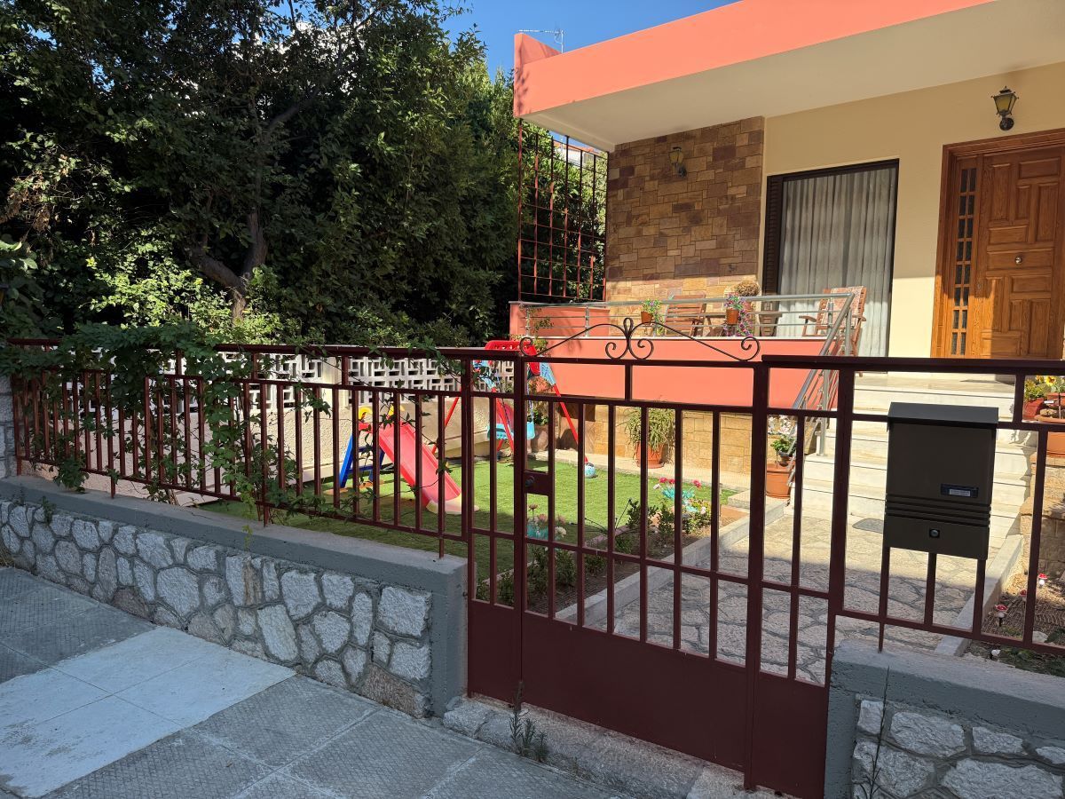 Οικίες αριστερά μας, δύο εξωτερικές πόρτες με περίτεχνα σχήματα, μια άλλη οικία δεξιά με εξωτερική επένδυση από πέτρες, γκαράζ και εδώ η οδός ανηφορίζει, έχοντας αριστερά την οδό Μεσολογγίτη.