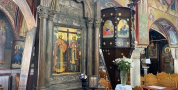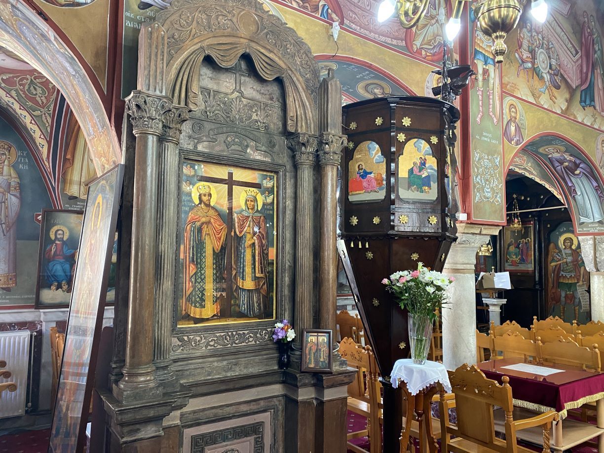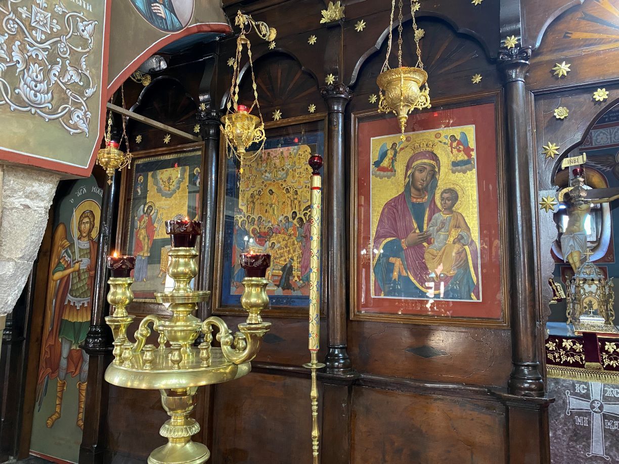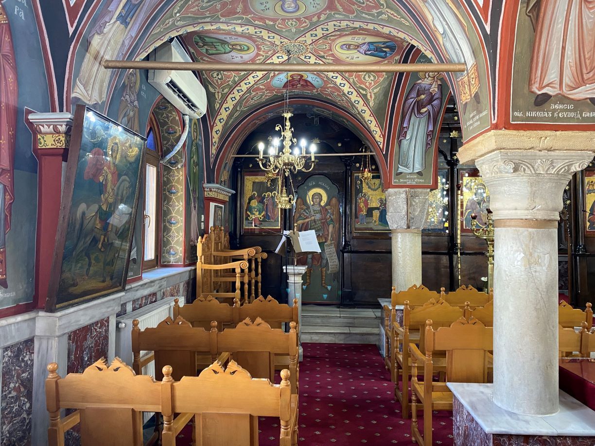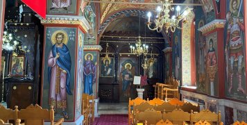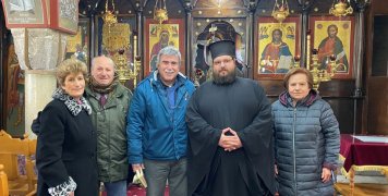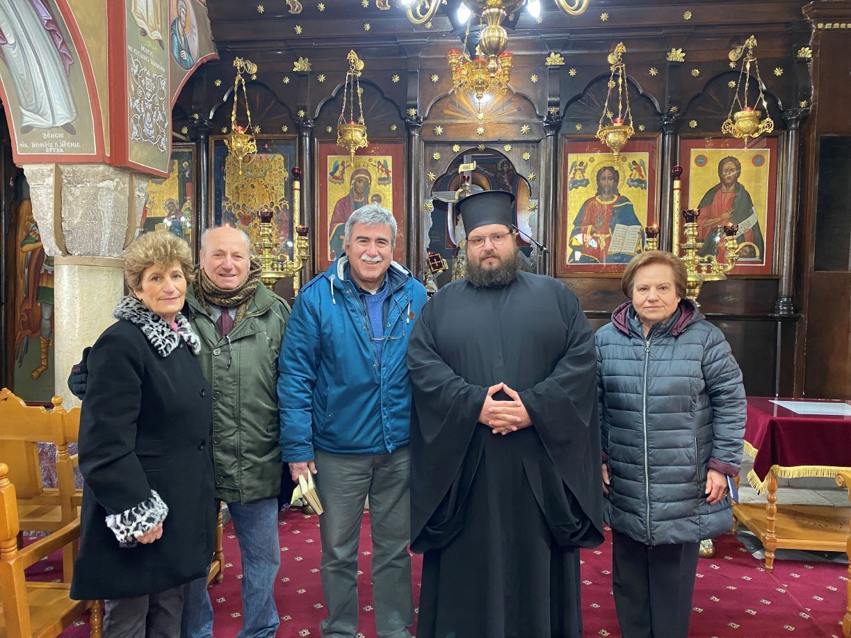 Ο νεαρός Ιερέας του Ναού Αλέξανδρος Μπογής, γιός του παπά Γιάννη Μπογή της Παναγίας Τουρλωτής, μας υποδέχεται θερμά με μέλη της Ενοριακής Επιτροπής δίνοντας μας στοιχεία για τον ναό, που συνδέεται ιστορικά με την Μονή Πλακισιωτίσσης Καλλιμασιάς.