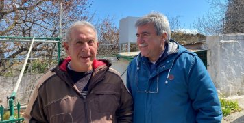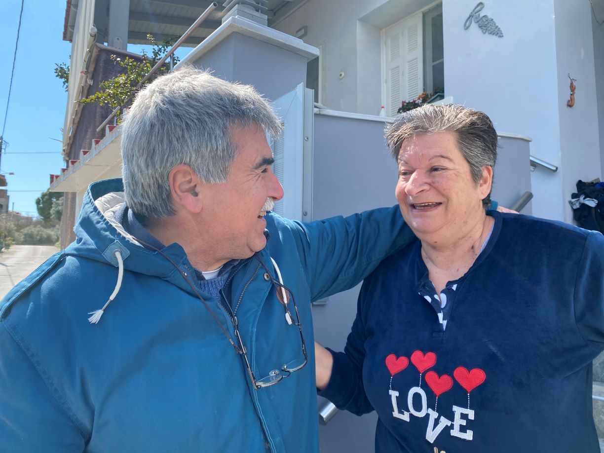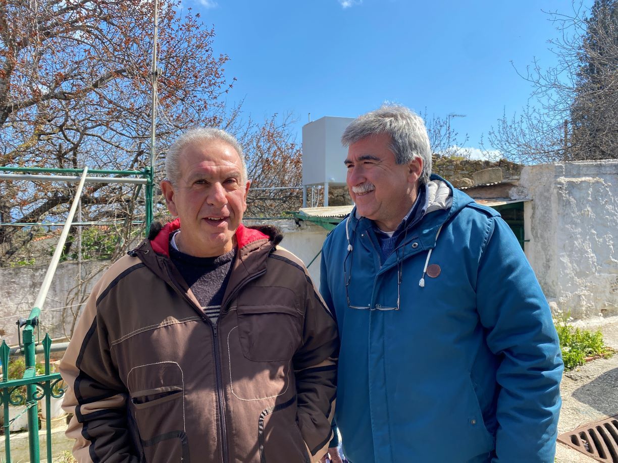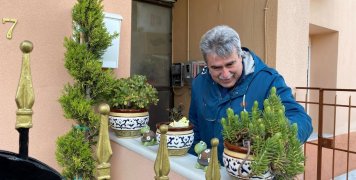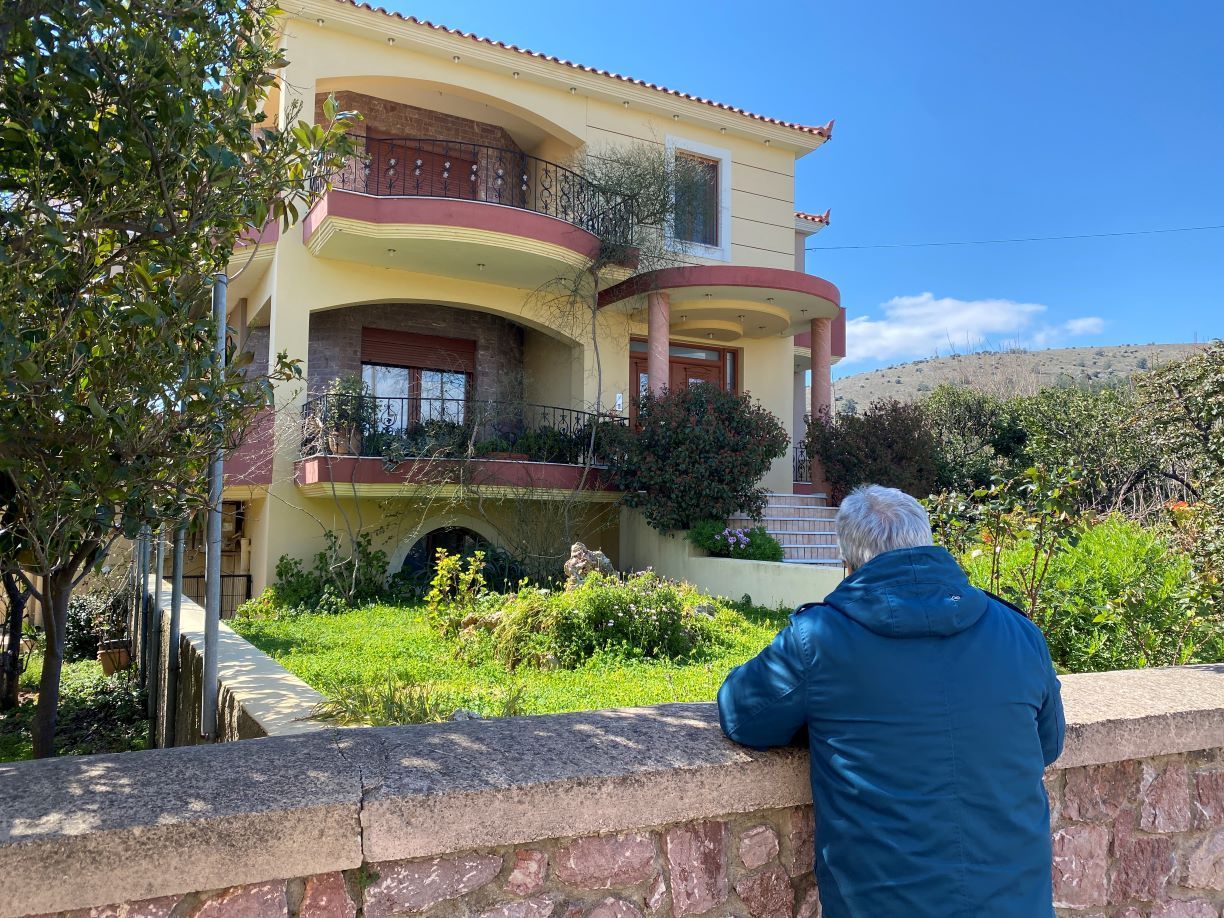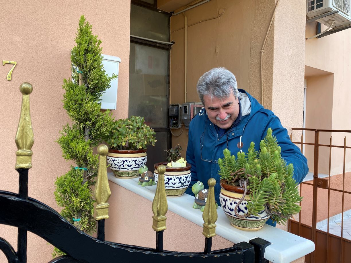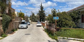 Αφήνοντας την να περιποιείται τις γλάστρες της φτάνουμε στο τελευταίο σημείο της οδού, μιας πλατεία, που φιλοξενεί τους κάδους απορριμμάτων, πριν η τελευταία ανηφοριά μας οδηγήσει, έχοντας από την μια πλευρά μια προστατευτική κίτρινη μπάρα και από την άλλη ένα πέτρινο τοιχίο, που αγκαλιάζει έναν πεύκο, μπροστά σε ένα κόκκινο σπίτι, απ’ όπου φανερώνεται η θέα της περιοχής κάτι που επισημαίνει και ο κάτοικος Δημήτρης Τουρλιώτης.