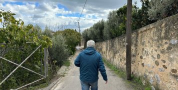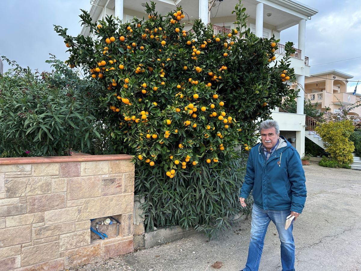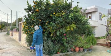 Πάλι προειδοποίηση για σκουπίδια και βαδίζοντας αποζημιωνόμαστε με ένα ζουμερό μανταρίνι, από αυτά που δεν καταδέχεται πλέον να μαζέψει κανείς, περνάμε από τοιχία και σκιερές συκιές, παρατηρούμε τις οικολογικές παγίδες για το δάκο σε μια αυλή ενός σπιτιού και στο σημείο αυτό ανταμώνουμε με την Α’ κατηφορική πάροδο της οδού, που μας οδηγεί σε παλιά περιβόλια.