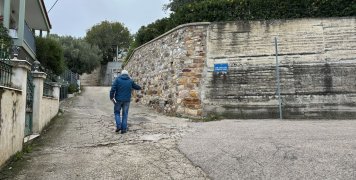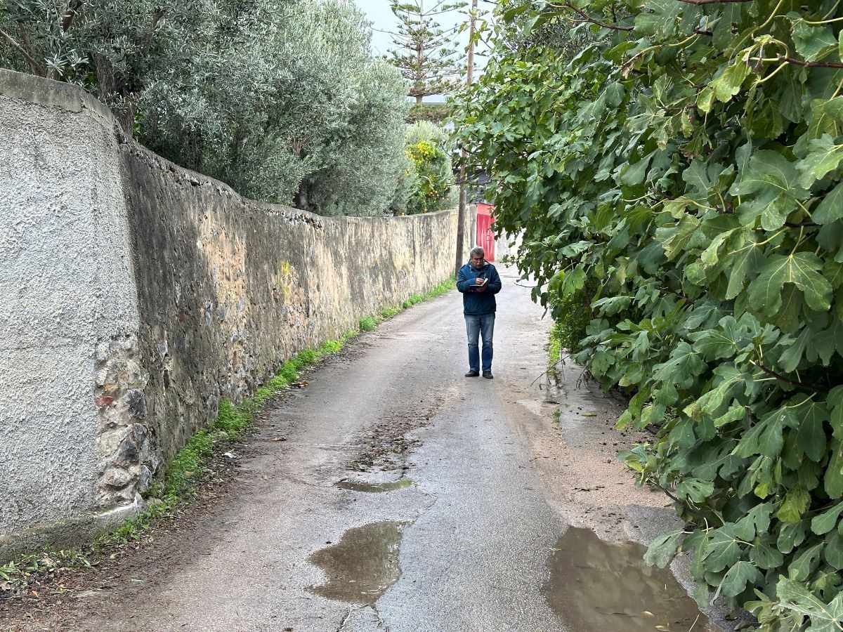 Αριστερά μας ένα μεγάλο χωράφι με ένα παλιό σπίτι μέσα και δεξιά νεόδμητες οικίες με τους κήπους τους, τα γιασεμιά και του βασιλικούς τους, ενώ κάτω το οδόστρωμα έχει τα έρημα του τα χάλια, με ένα σημείο μάλιστα ξεχασμένο… χωματόδρομο.