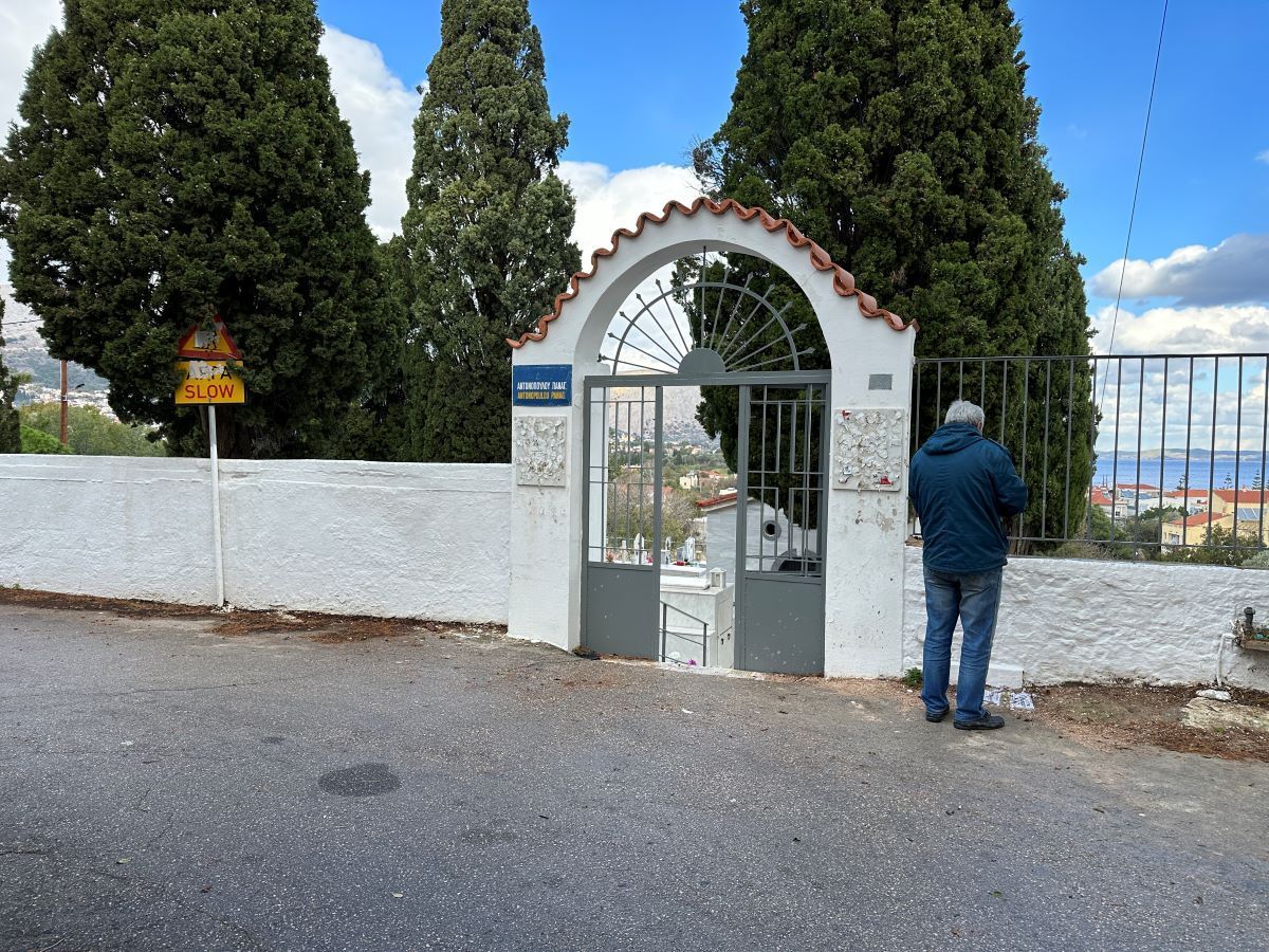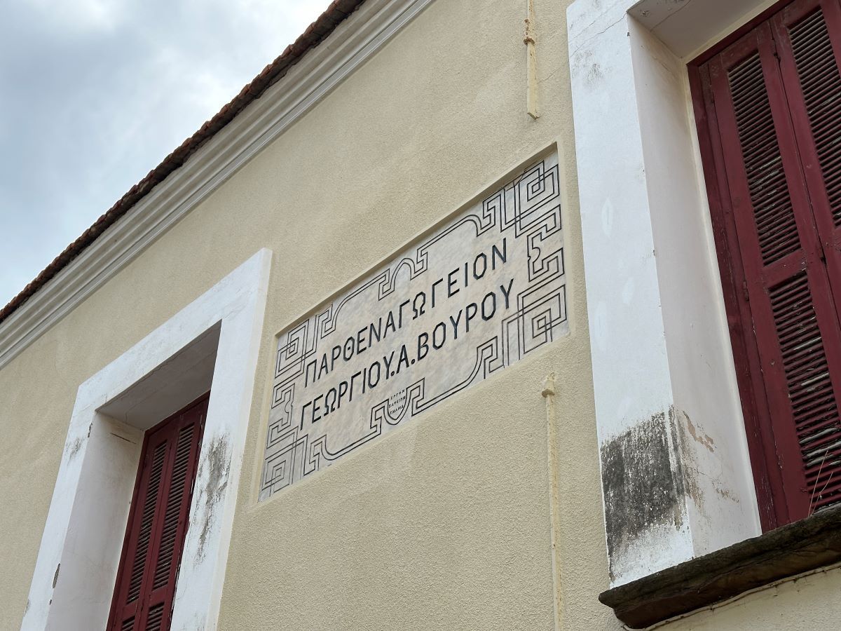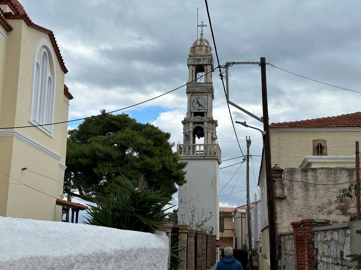Συνεχίζουμε εν μέσω οικιών, μερικά και με… άγκυρα στην πρόσοψη, δείγμα της ναυτικής φυσιογνωμίας της περιοχής, ενώ ο άσπρος τοίχος της Εκκλησίας από την μία και το Βούρειο Παρθεναγωγείο από την άλλη, μας οδηγούν υπό την σκιάν του καμπαναριού της Εκκλησίας στο τέλος της οδού Αντωνοπούλου, την οποία από τον Περιφερειακό των Λιβαδίων ξεκινήσαμε την περιήγηση μας και στην οδό Γεωργίου Βούρου «Φτού και βγήκαμε».