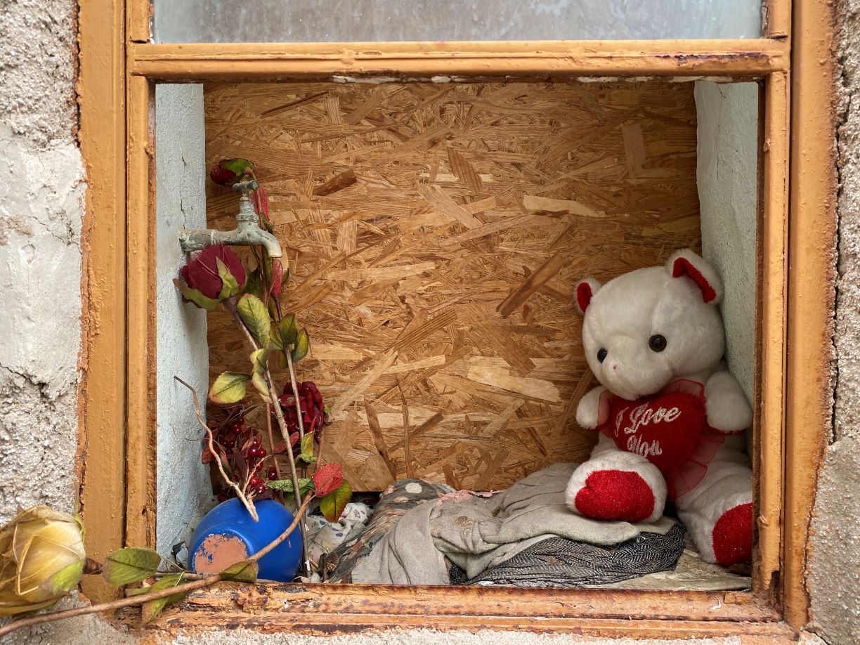 Δεξιά του παρατηρούμε μια περιποιημένη αυλή και ακριβώς απέναντι μια τριώροφη οικία, που βλέπει δίπλα της ένα χώρο με αγριόχορτα και μια υπερμεγέθη Ψώρα, για να γίνεται η πρώτη στροφή της, που βγάζει σε ένα σταυροδρόμι, που μαζί με μας βλέπει και ένα... αρκουδάκι από ένα ανοικτό παράθυρο.
