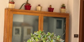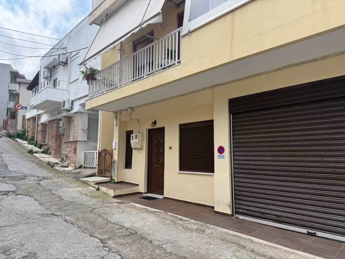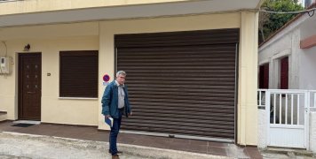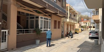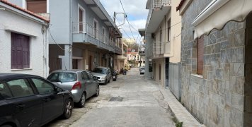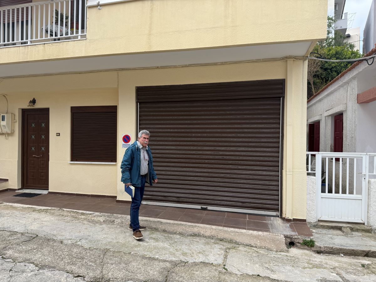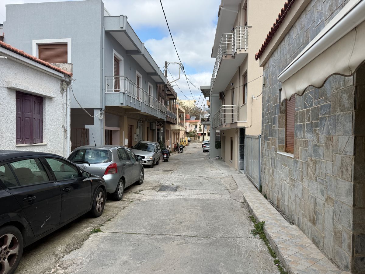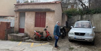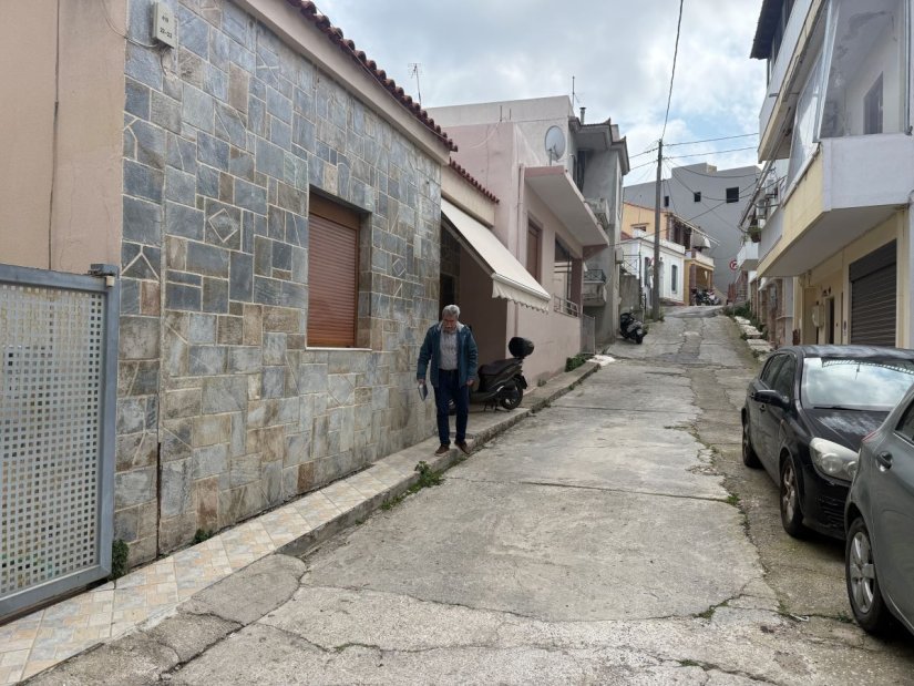 Δεξιά μια οικία με άσπρα κάγκελα στο Νο 8, δύο άλλες οικίες στην σειρά, μια με γλαστράκια στα ρολόγια της ΔΕΗ, απέναντι από άλλες δύο οικίες, με γκαράζ δίπλα τους.