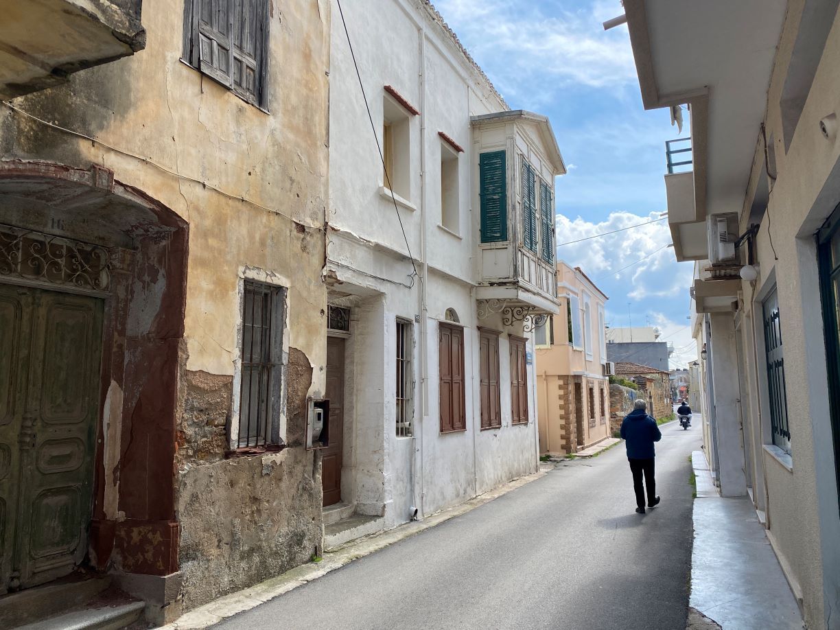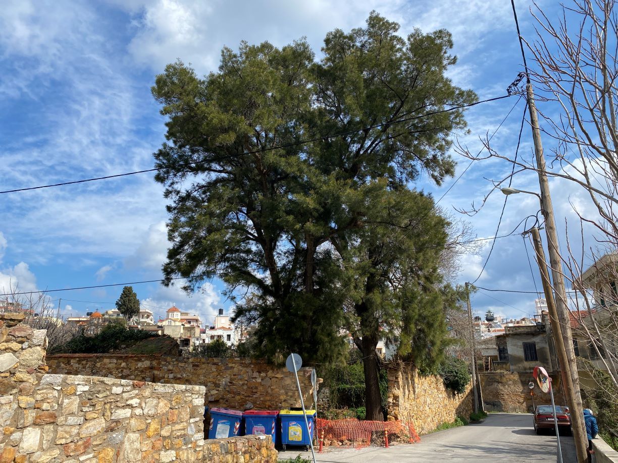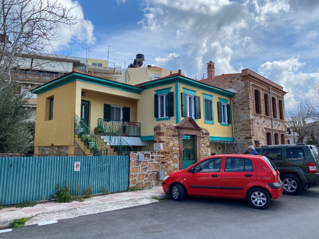 Αυτό είναι και το τελευταίο σημείο που συναντάμε παρακάμπτοντας ένα πανέμορφο σπίτι στην γωνία με τα αρχικά Π.Γ.Σ. στην είσοδο και χρονολογία 1882, ένα άλλο πέτρινο με ζωγραφιστό μπαλκόνι, που φιλοξενεί τον Σύνδεσμο Ηλεκτρολόγων, το πάρκο Θελούδη και το πάρκινγκ δίπλα στην πρώην κλινική Αυγουστή, που βρίσκεται και ο αρχαιολογικός χώρος της Συναγωγής.