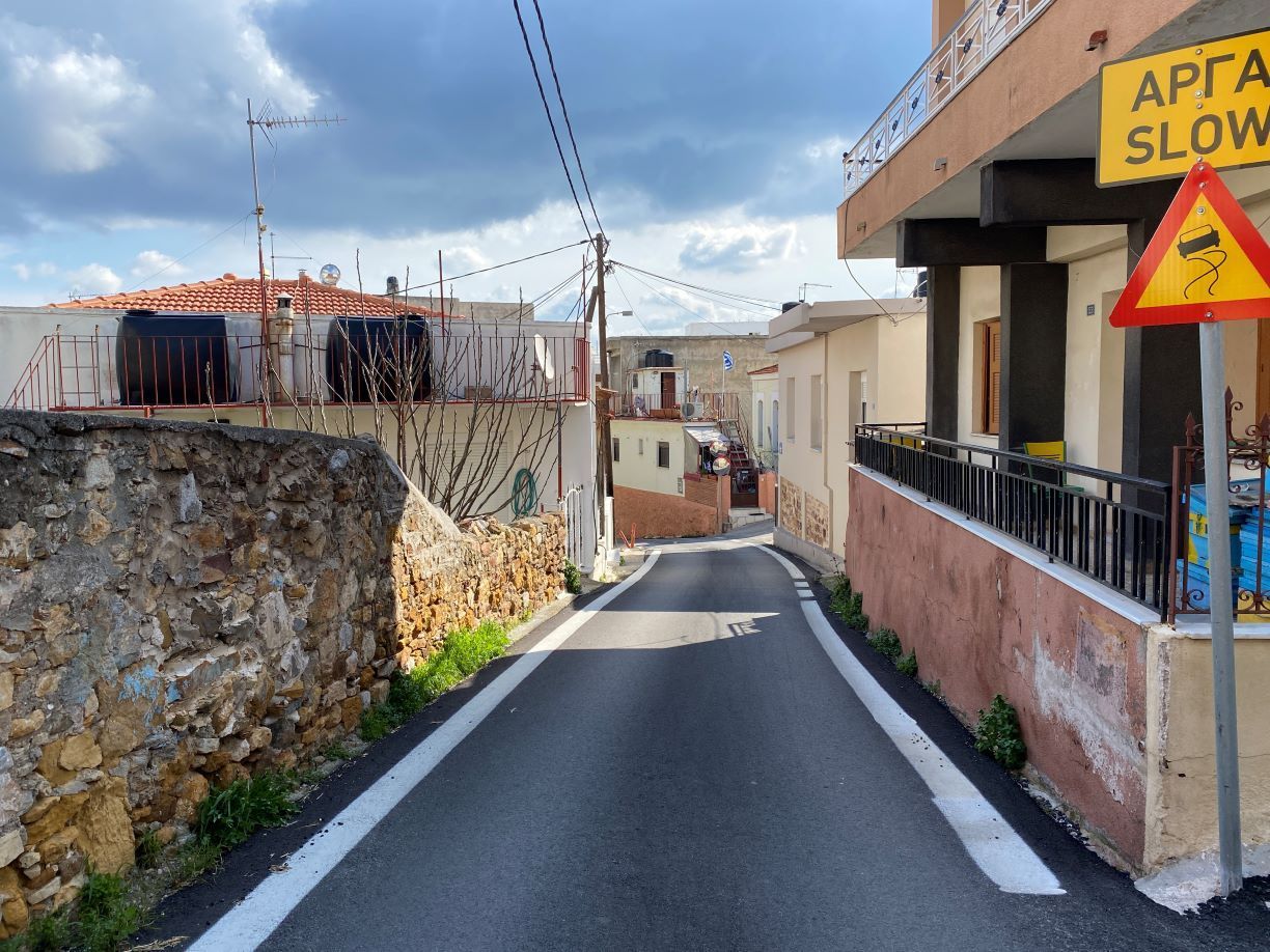 Εκεί υπάρχουν και προστατευτικά στηθαία, αφού τα σπίτια από την μία πλευρά βρίσκονται σε κατωφέρεια και σε χαμηλότερο επίπεδο από τον δρόμο, που σκιάζεται από λεμονιές και περίτεχνες αυλές, με περιποιημένα λουλούδια.