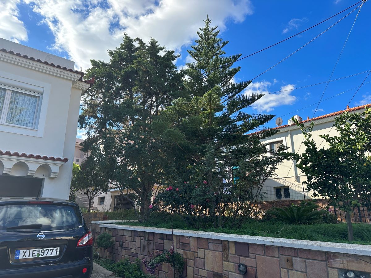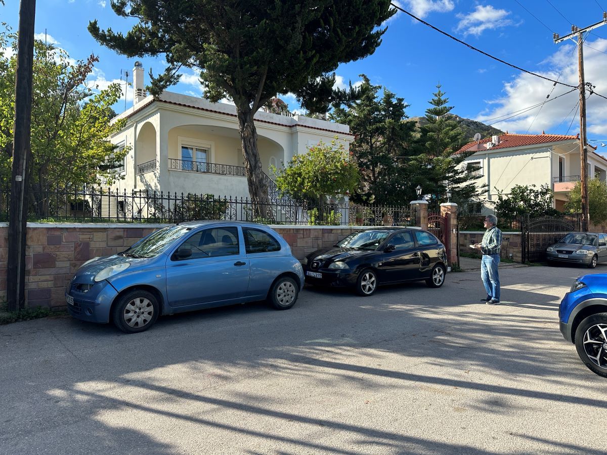 Μια γκαραζόπορτα δεξιά, ένας κήπος με τριανταφυλλιές, μικρές Αροκάριες, διακοσμητικούς πύθους εισόδους στις οποίες οδηγούν σκάλες, ένα Έλατο με ένα μεγάλο Φύκο και απέναντι μας βρίσκεται η Α’ πάροδος της οδού, που οδηγεί προς την μεριά του Χριστού που διακρίνεται στο βάθος. Κήποι αριστερά και δεξιά, εσπεριδοειδή, έλατα και γιασεμιά, γκαράζ υπό σκιάν, σπίτια σε τρία επίπεδα παρτεριών, άλλα με υπέροχους κήπους ακόμα και με παιδικές χαρές μέσα, στο βάθος το Πηγάνιο όρος και παραινέσεις για μη ρίψη σκουπιδιών, κήποι με μελιτζάνες και πιπεριές και η πάροδος καταλήγει αδιέξοδα σε αυλές σπιτιών, που στο βάθος τους βλέπει κανείς την θάλασσα.