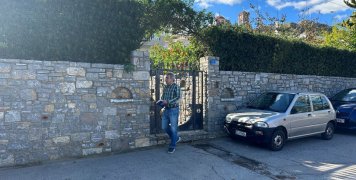Στην έξοδο ένα μεγάλο πετροντούβαρο αυλής, μια είσοδος με τα στοιχεία Γ.Μ. η είσοδος του Ειδικού Σχολείου και της Νοσηλευτικής Σχολής του Νοσοκομείου και εδώ μια πινακίδα κάτι άλλο θέλει να πεί επιπρόσθετα στα στοιχεία του τιμωμένου προσώπου.