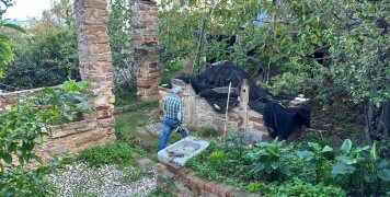 Ξαναβγαίνουμε στην οδό από την άλλη πλευρά, παρατηρούμε μια σειρά γλάστρες στο μπλέ χρώμα ενώ απέναντι μας κυριαρχεί ένα άχρωμο τοιχίο, απέναντι από ένα χωράφι με ένα βαθύ πηγάδι, φυσικά πρόχειρα σκεπασμένο και αναξιοποίητο.