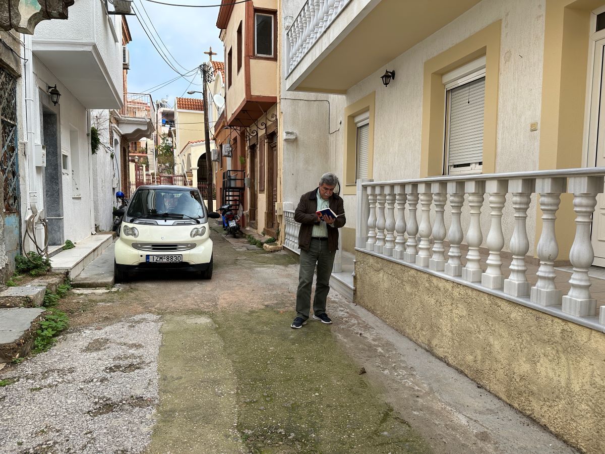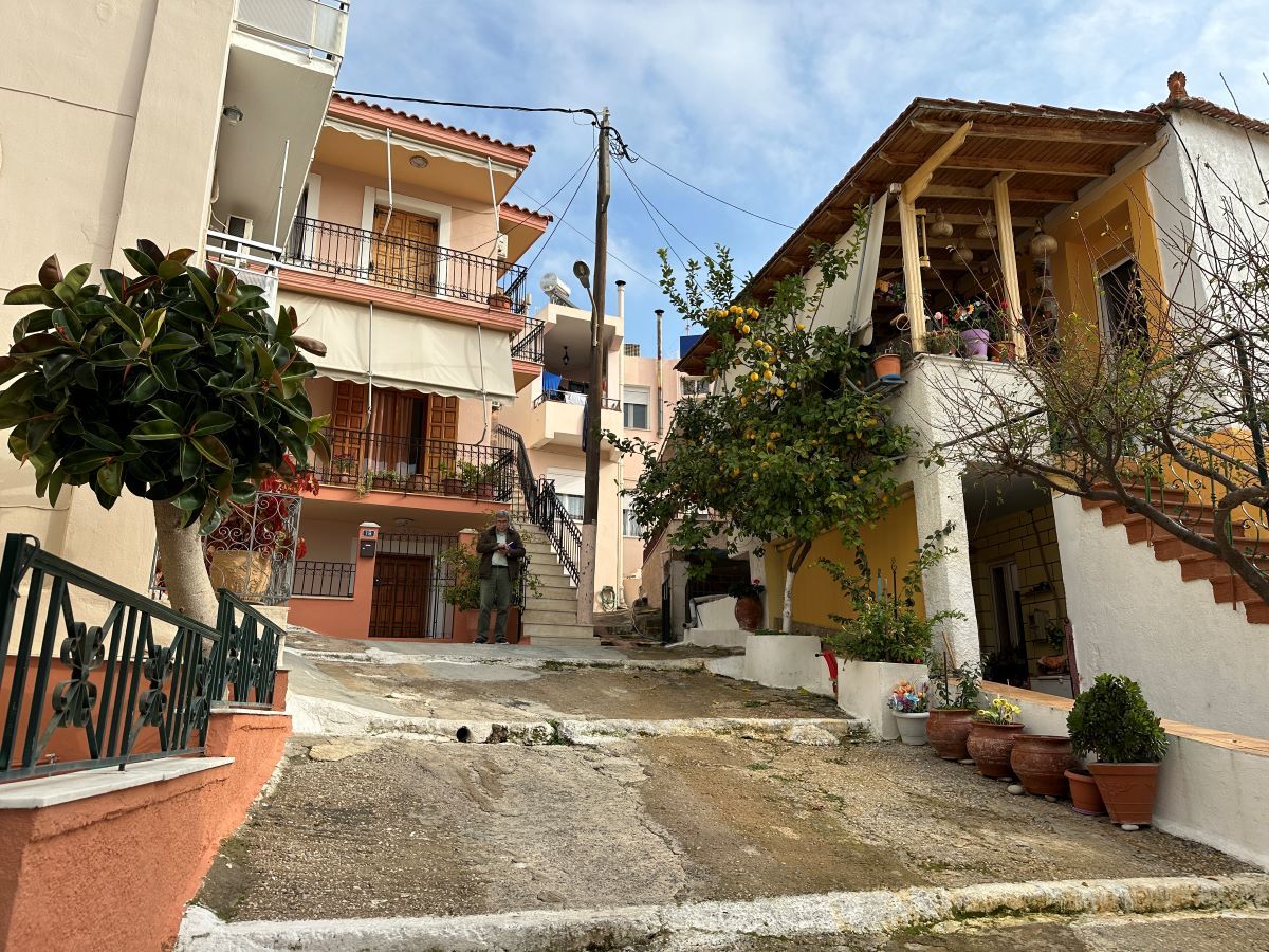 Ένα πράσινο μπαλκόνι την γωνία και μια ερειπωμένη κατοικία ολοκληρώνουν το μήκος της οδού Στυλιανού Μηλιάδη, όπου από την οδό Ιερωνύμου Γοργία μπήκαμε και στην οδό Σκαραμαγκά στον γνωστό μας «ποταμό» «Φτου και βγήκαμε».