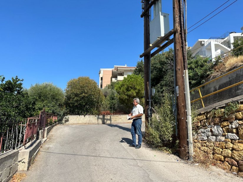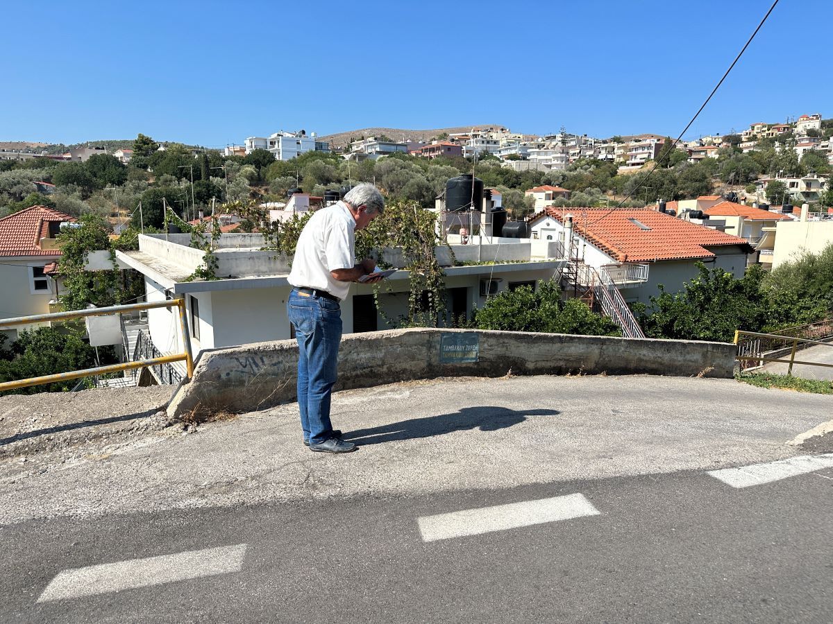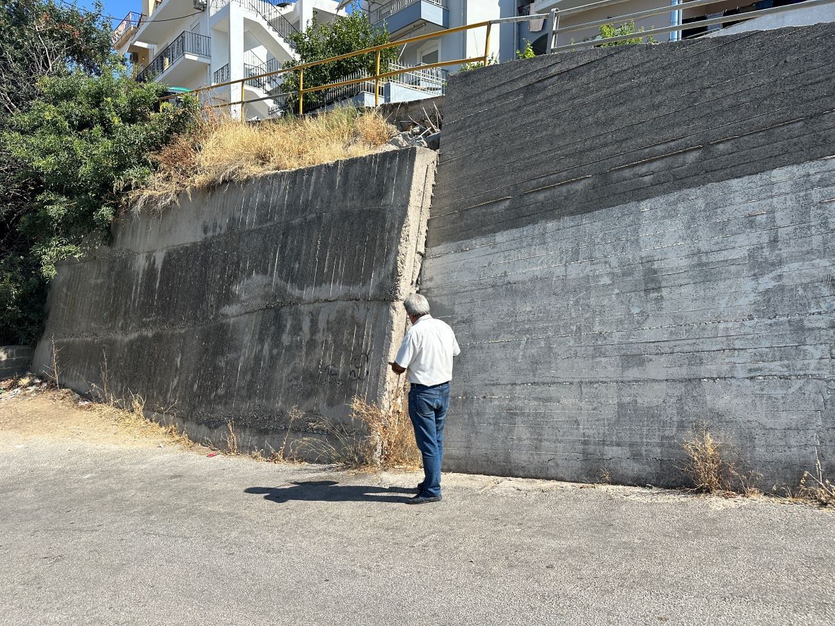 Απέναντι μας βρίσκεται ένα διώροφο σπίτι και ευτυχώς απέναντι του ένα τροχονομικό σήμα απαγορεύει την άνοδο, προστατεύοντας την οδό από ατυχήματα όπως επισημαίνει και ο κάτοικος Αντώνης Αγγουλές.