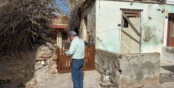 Επιστέφοντας στην οδό και παρατηρώντας ένα ποδήλατο μινιατούρα στην είσοδο ενός σπιτιού, συνεχίζουμε με προσφυγικά σπίτια δεξιά μας και από την άλλη πλευρά το γνωστό μας «Μηχανουργείο» μέχρι που η οδός Θεοκρίτου φτάνει στο σημείο, που γκρεμίστηκε το τοίχος για να γίνει… δρόμος και μικροί ελεύθεροι χώροι για στάθμευση των επιχειρήσεων ενοικιαζόμενων Ι.Χ.