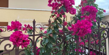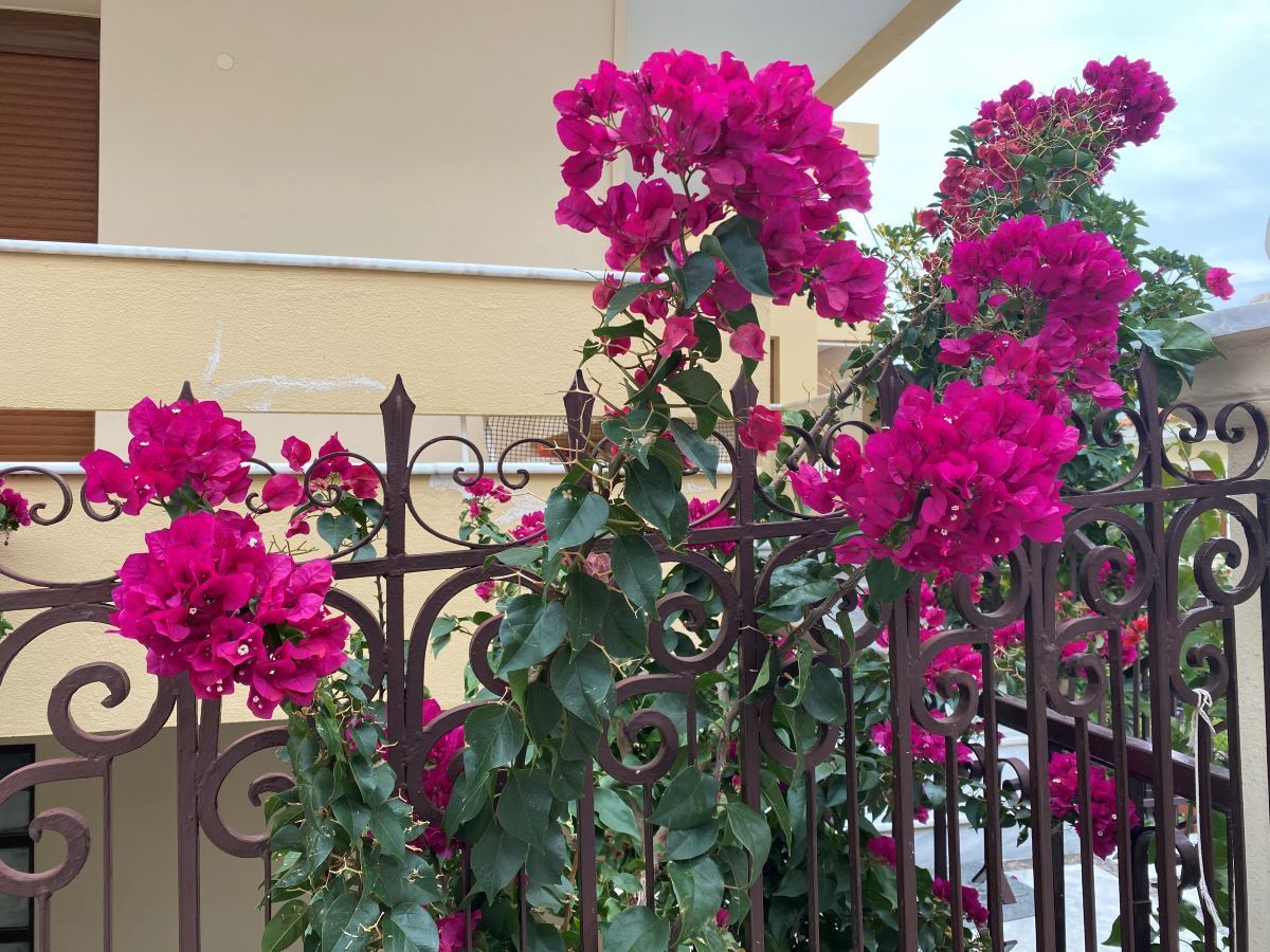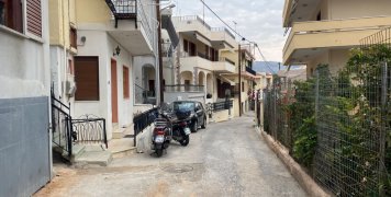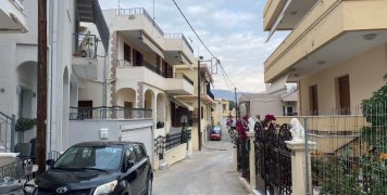 Μια βοκαμβίλια, μια γλυπτή μαρμάρινη είσοδος είναι ίσως τα μοναδικά ξεχωριστά κομμάτια μιας κοινότυπης οδού, που πάντως τα σπίτια της έχουν γκαράζ, που επ΄ουδενί όμως καλύπτουν τις ανάγκες.