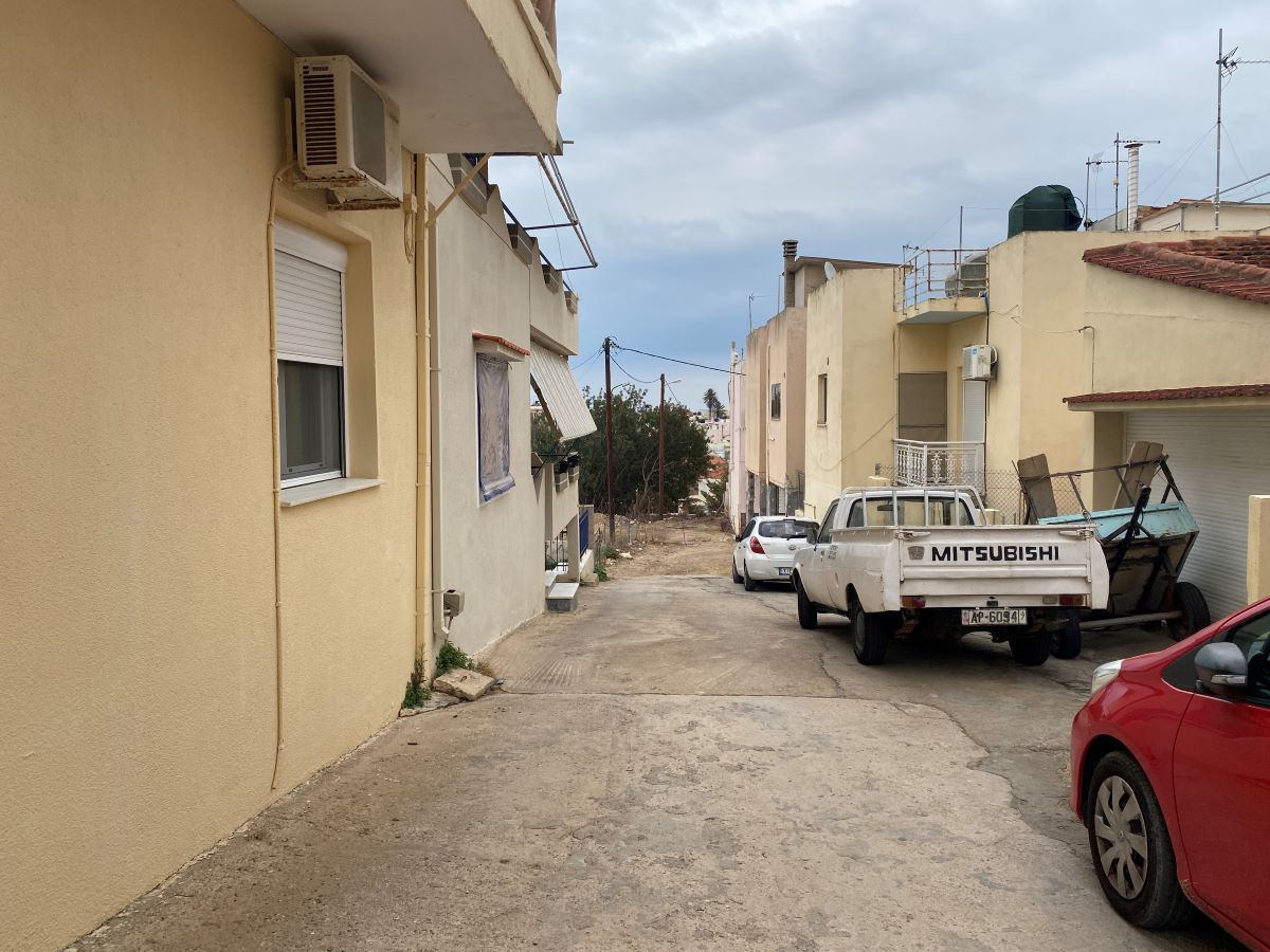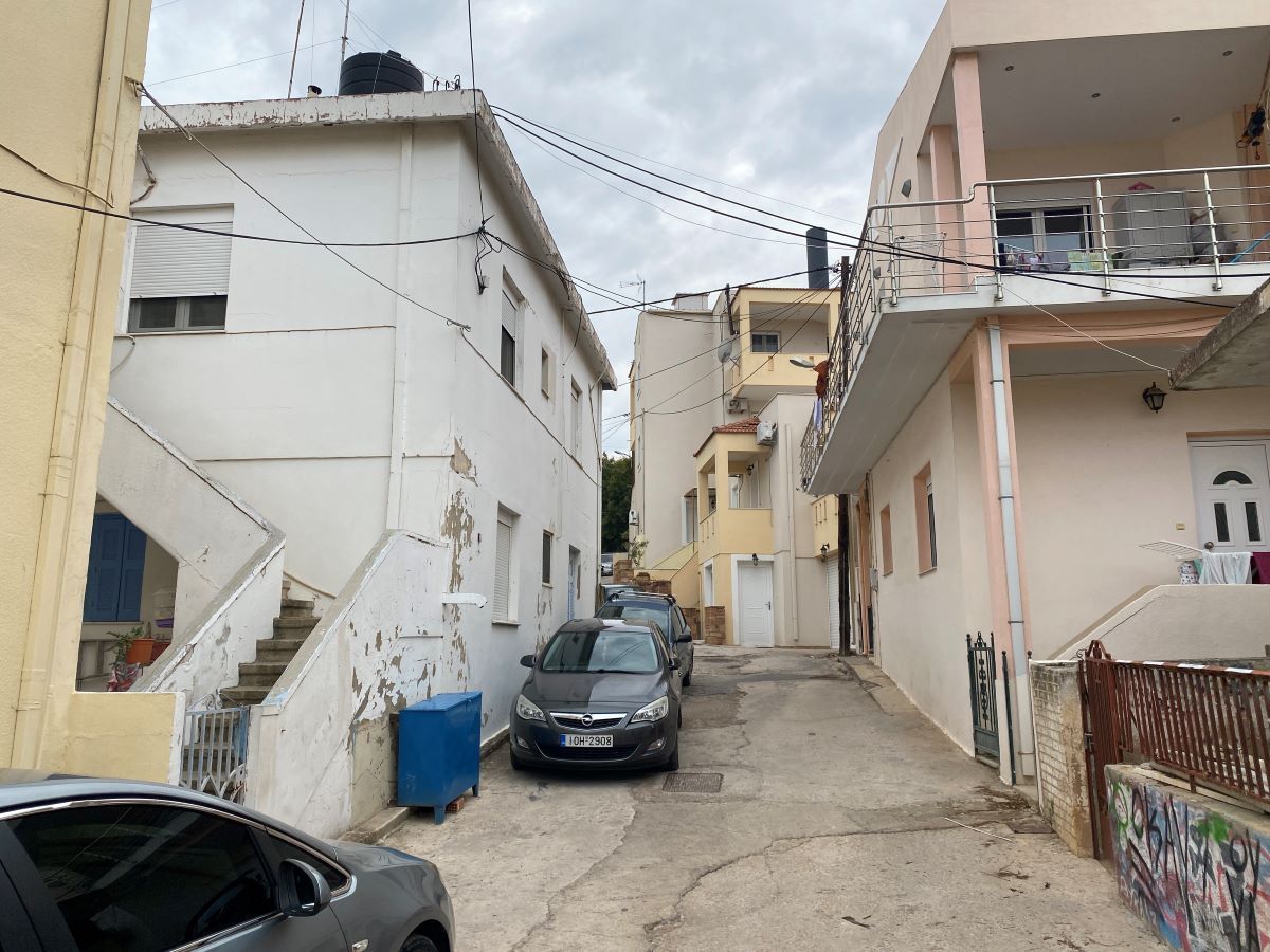 Με μικρούς κήπους και μικρές ανάσες πρασίνου από ροδιές, μουσμουλιές και λεμονιές, η οδός στρίβει προς τα κάτω, δείχνοντας ότι είναι αδιέξοδη, ενώ εντύπωση προκαλεί και το οδόστρωμα της, που απλά έχει τα… χάλια του.