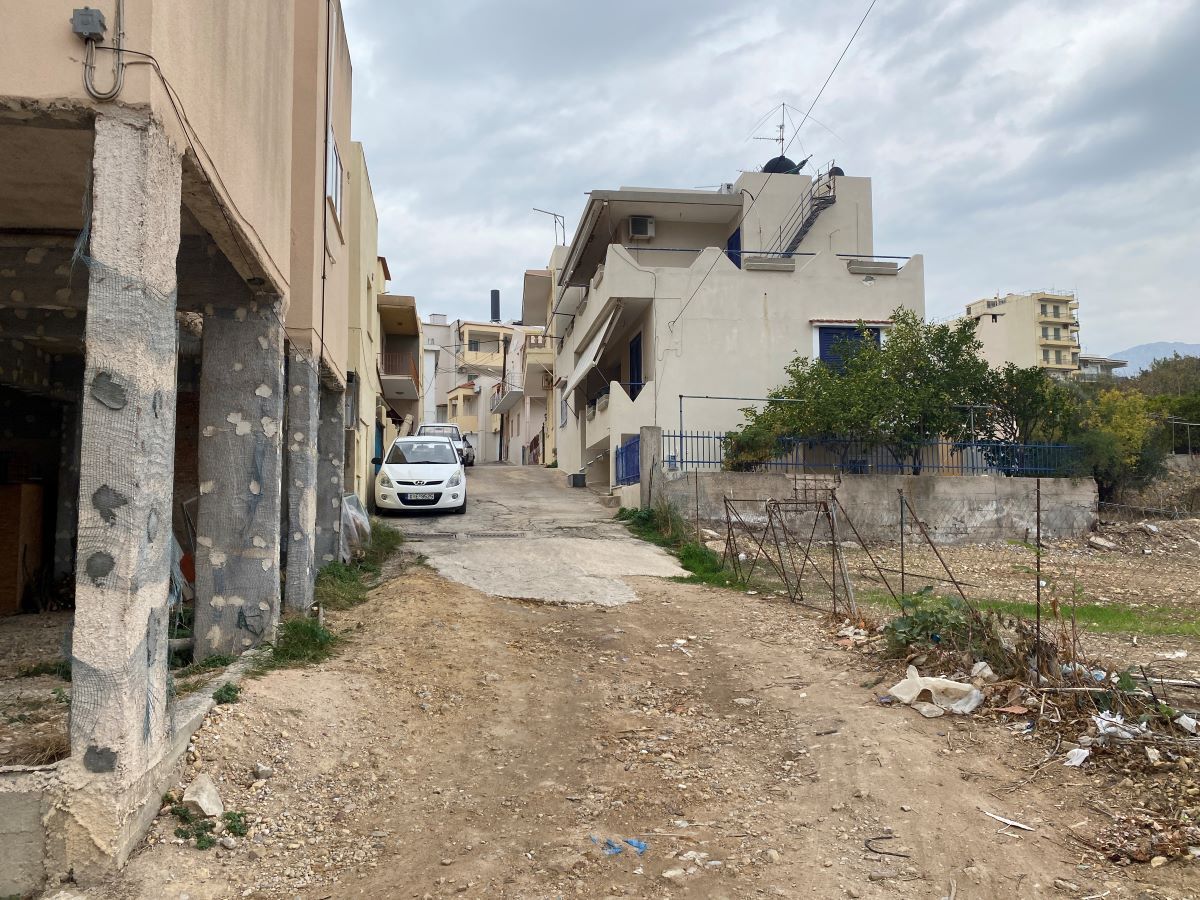 Στην μέση ακριβώς της οδού, ένα χωράφι γεμάτο μπάζα και αγριόχορτα, θα μπορούσε να αποτελέσει μοναδική ανάσα στάθμευσης, κάτι που επισημαίνει και ο Συνταγματάρχης ε.α. Ιωάννης Χαβαριώτης.