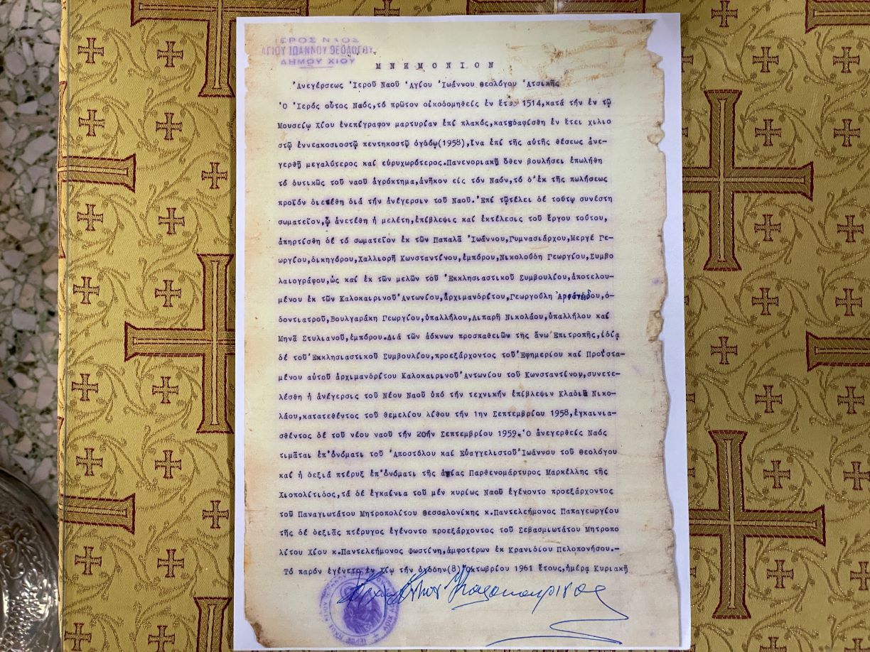 Ο ιστορικός της Χίου Γ. Ζολώτας σημειώνει ότι εκεί εκκλησία υπάρχει από το 1320 και επισήμως καταγεγραμμένο είναι αυτό από το 1514.