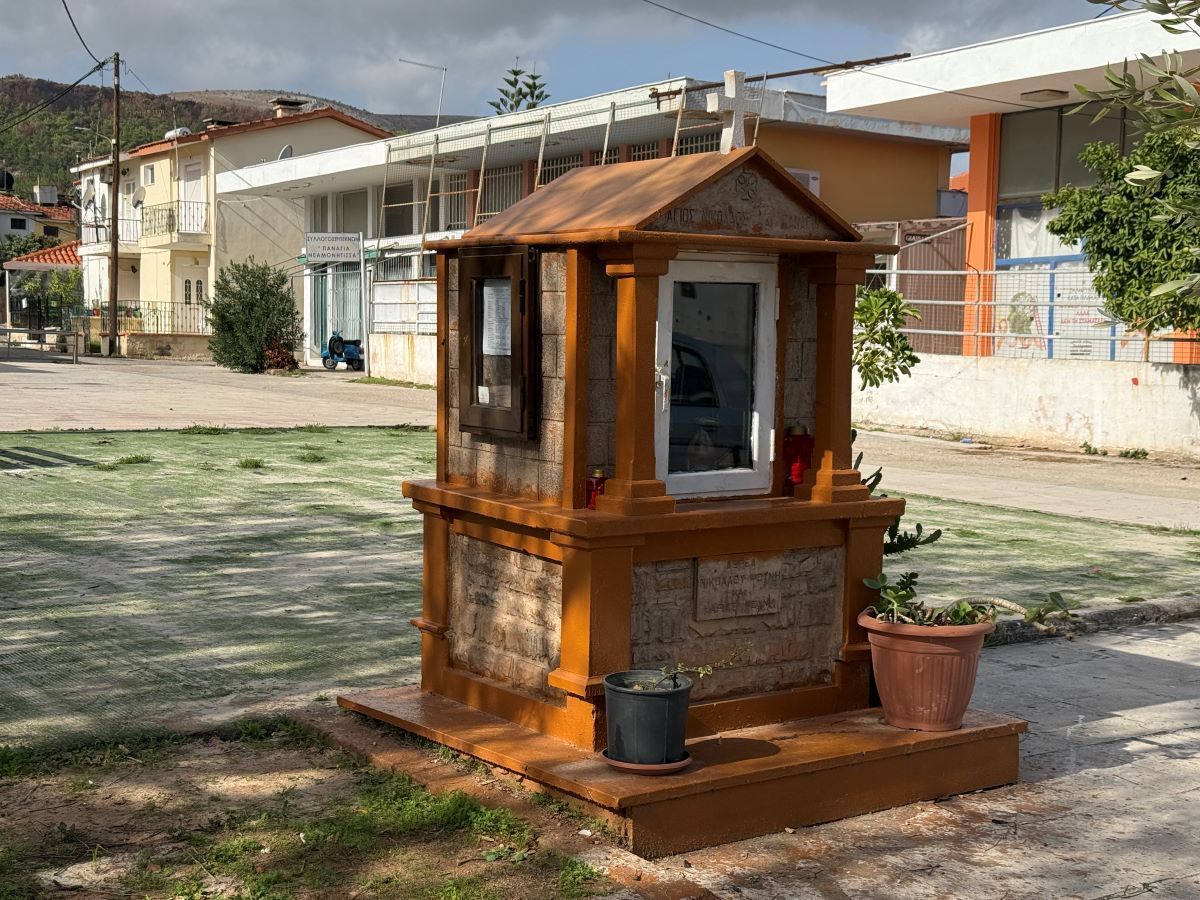 Εδώ από το δεξί μας χέρι με πρόσωπο προς τις κατοικίες αλλά έξω από αυτές τρείς ιδιωτικές οικίες της οικογένειας Τσιπουρλή κα εδώ στην στροφή του δρόμου σχηματίζεται μια πλατεία.