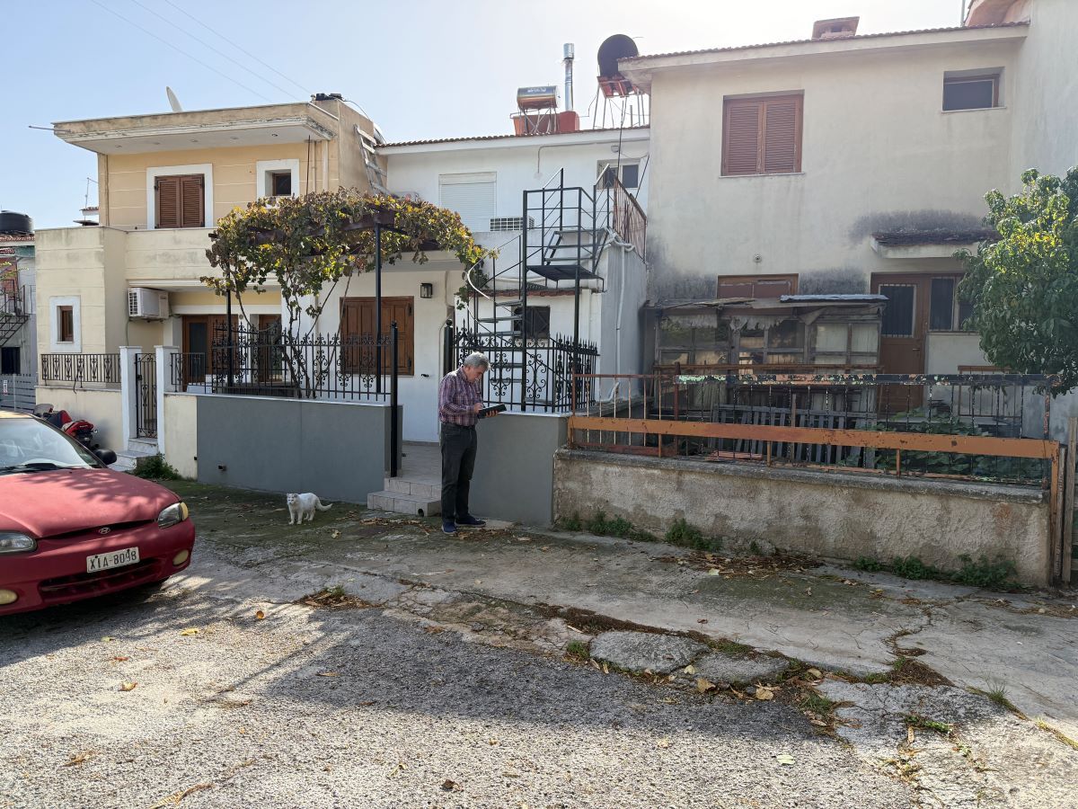 Οι οικίες βρίσκονται εν σειρά, κάθε μια με το δικό της χρώμα, Ι.Χ. «αναπαύονται» κάτω από σκιές, ενώ η Ρένα Γεωργούλη δεν χάνει την ευκαιρία μόλις μας βλέπει να επισημάνει ότι άσφαλτο οι κατοικίες έχουν να δουν από την χρονιά κατασκευής τους.