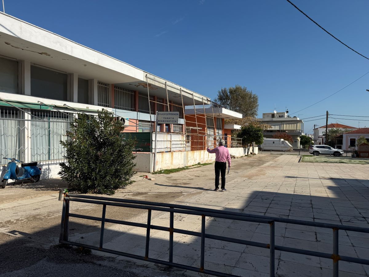 Τα κτίρια που στεγάζουν Συλλόγους, σπίτια περιμετρικά της πλατείας, ένας σε άθλια κατάσταση τον λες και χλοο...τάπητα, φυσικά πλαστικό και εδώ στο πίσω μέρος του προσκυνηταριού τερματίζουμε την διαδρομή μας, την οποία από την μια πλατεία του οικισμού της Ευρετής και ξεκινήσαμε και στην άλλη πλατεία «φτου» και τερματίσαμε.