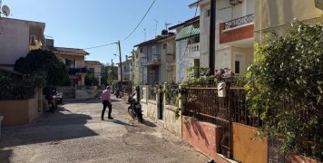 Αυλές με λουλούδια και λεμονιές, σπίτια με εξωτερικά στέγαστρα και πορτοκαλιές και μπαίνουμε στον ελεύθερο αυτό χώρο, που μπορεί να είναι απεριποίητος αλλά τουλάχιστον διαθέτει κάποια παγκάκια για χαλάρωση.