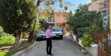 Εδώ ο δρόμος κάνει νέο άνοιγμα, δεξιά μια αυλή με γλάστρες, ένα νεόδμητο σπίτι στο 18, απέναντι μια αυλή με κίτρινους κρίνους, , αριστερά ένα άλλο σπίτι με πέργκολα, ένα γκαράζ, μια οικία με κόκκινο εξωτερικό κάγκελο και εδώ ακριβώς ακολουθούμε την είσοδο που μας βγάζει στην πλατεία των κατοικιών.