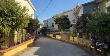 Μπαίνουμε στον πυκνοκατοικημένο οικισμό, σε αυλές σπιτιών από ροδιές και γιασεμιά, σπιτιών πανομοιότυπων, που εξωτερικά έχει το καθένα την ιδιαίτερη όψη, που επέλεξε ο ιδιοκτήτης του, όπως αυτή οικία με άσπρα κολωνάκια στον αριθμό 101.