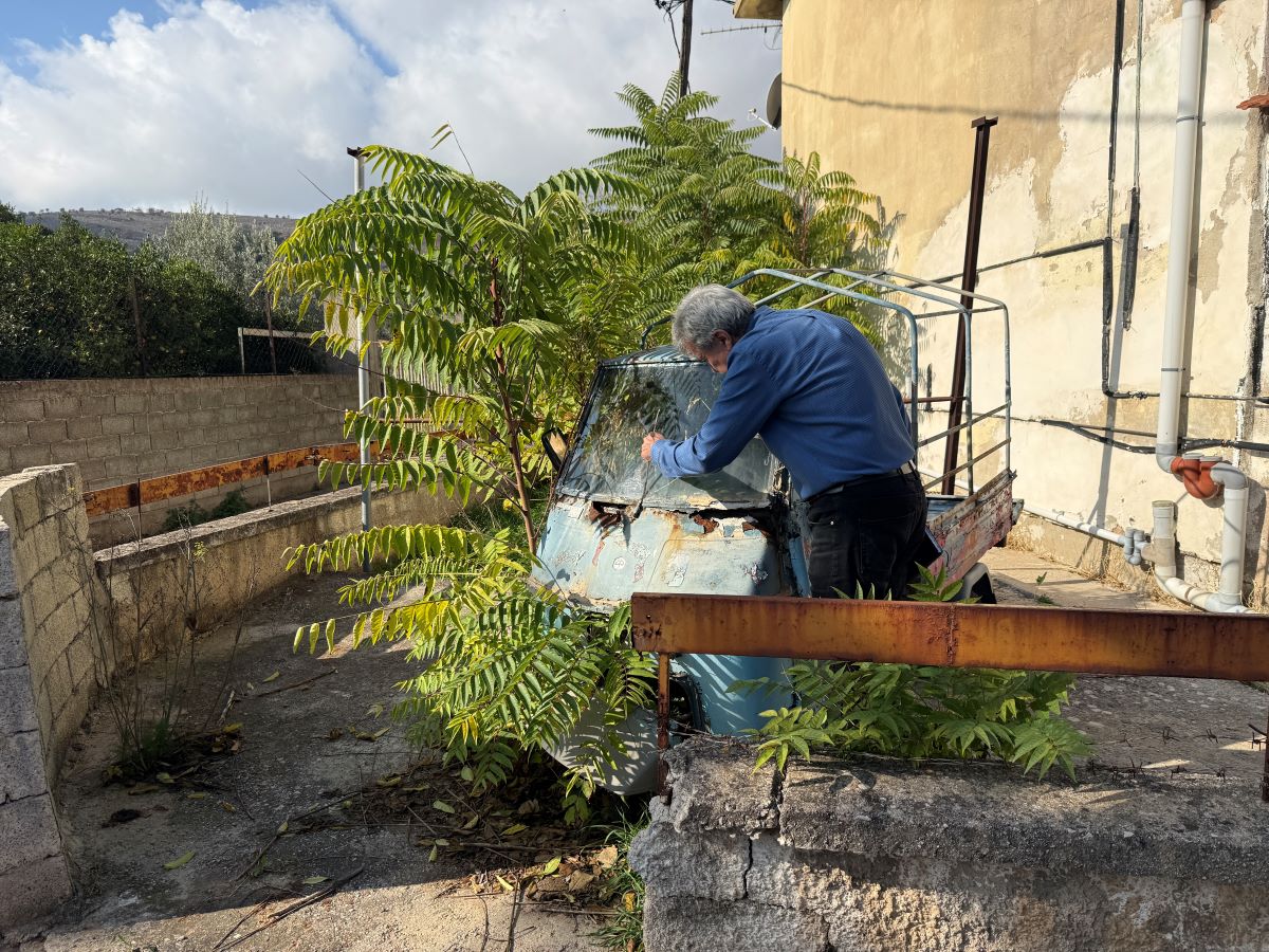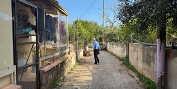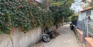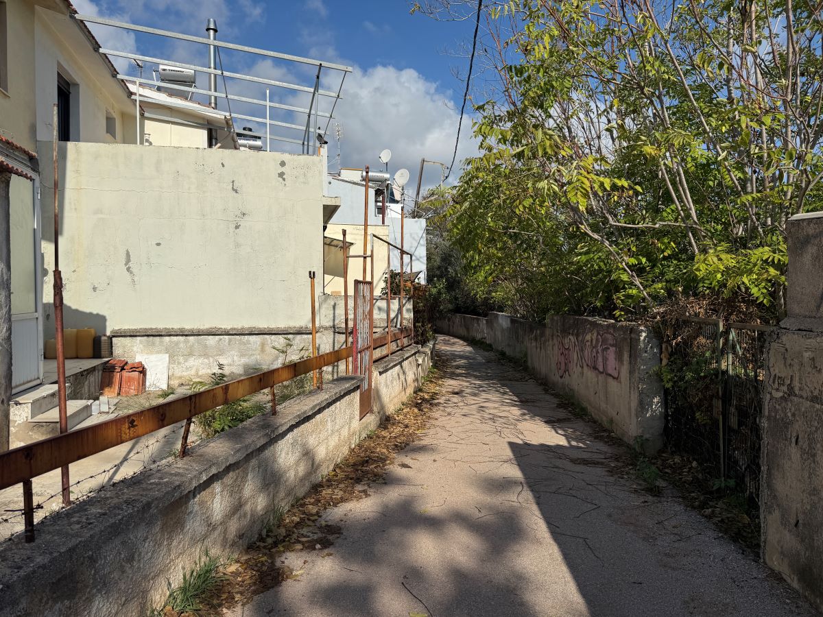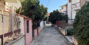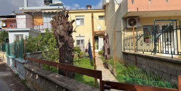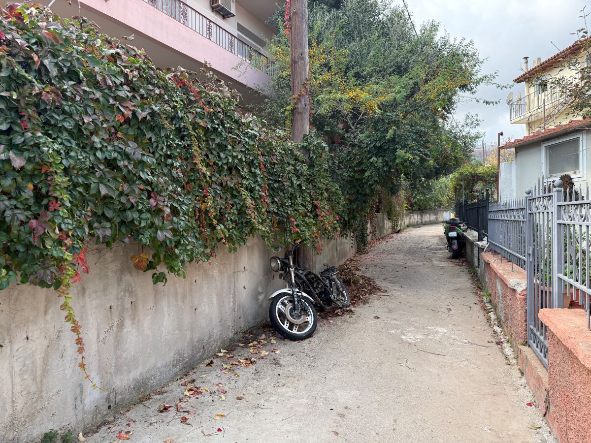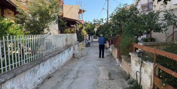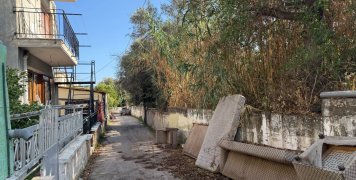 Ένα παρατημένο τρίκυκλο σε μια αυλή, ένας παλιός καναπές, απεριποίητες αυλές από την μια πλευρά και από την άλλη γειτονικά απεριποίητα και αυτά περιβόλια.