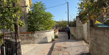Στρίβουμε βρίσκοντας στη γωνία δεξιά ένα παρατημένο σαλόνι (!) ευτυχώς ελιές, πορτοκαλιές, ροδιές και σκιερές τσικουδιές.