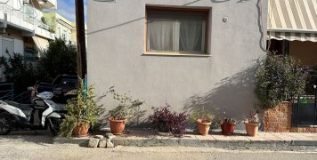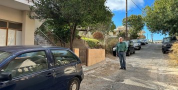 Επιστρέφουμε ανηφορίζοντας, βλέποντας στην στροφή μια σειρά γλάστρες πάνω πάντως στο πεζοδρόμιο, που δεν το λες και το κατάλληλο σημείο, με δύο διώροφες οικίες, μια με εμφανώς οβάλ σχήμα. Οι διώροφες οικίες συνεχίζονται με διαλείμματα σκιών, από την μια πλευρά το πεζοδρόμιο είναι υπερυψωμένο, που με την βοήθεια δύο σκαλοπατιών επανέρχεται σε φυσιολογικό επίπεδο, στο σημείο που η οδός συναντάται με την συνάδελφο της Κ. Παπαζή.