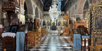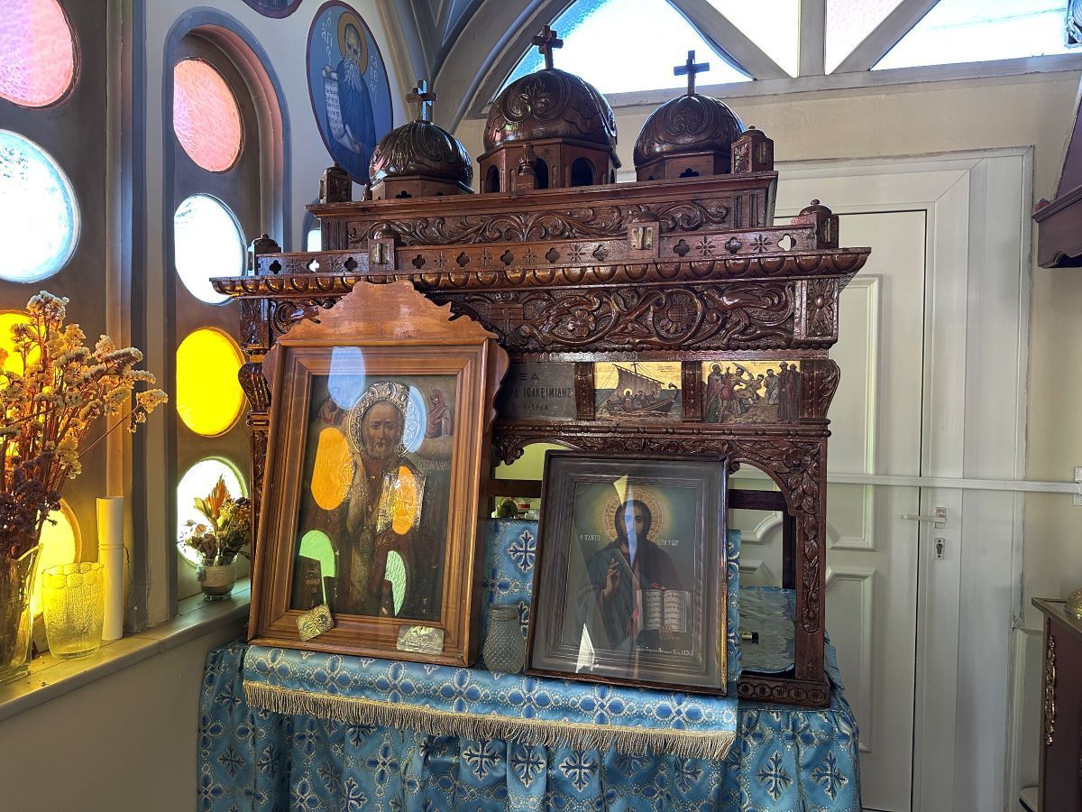 Στον πρόναο φυλάσσεται Επιτάφιος, που κατασκευάστηκε από πρόσφυγες το 1964.
