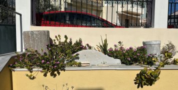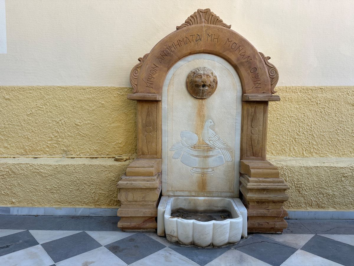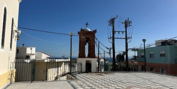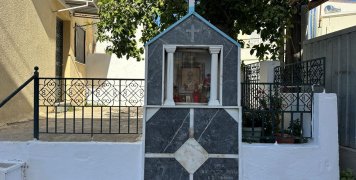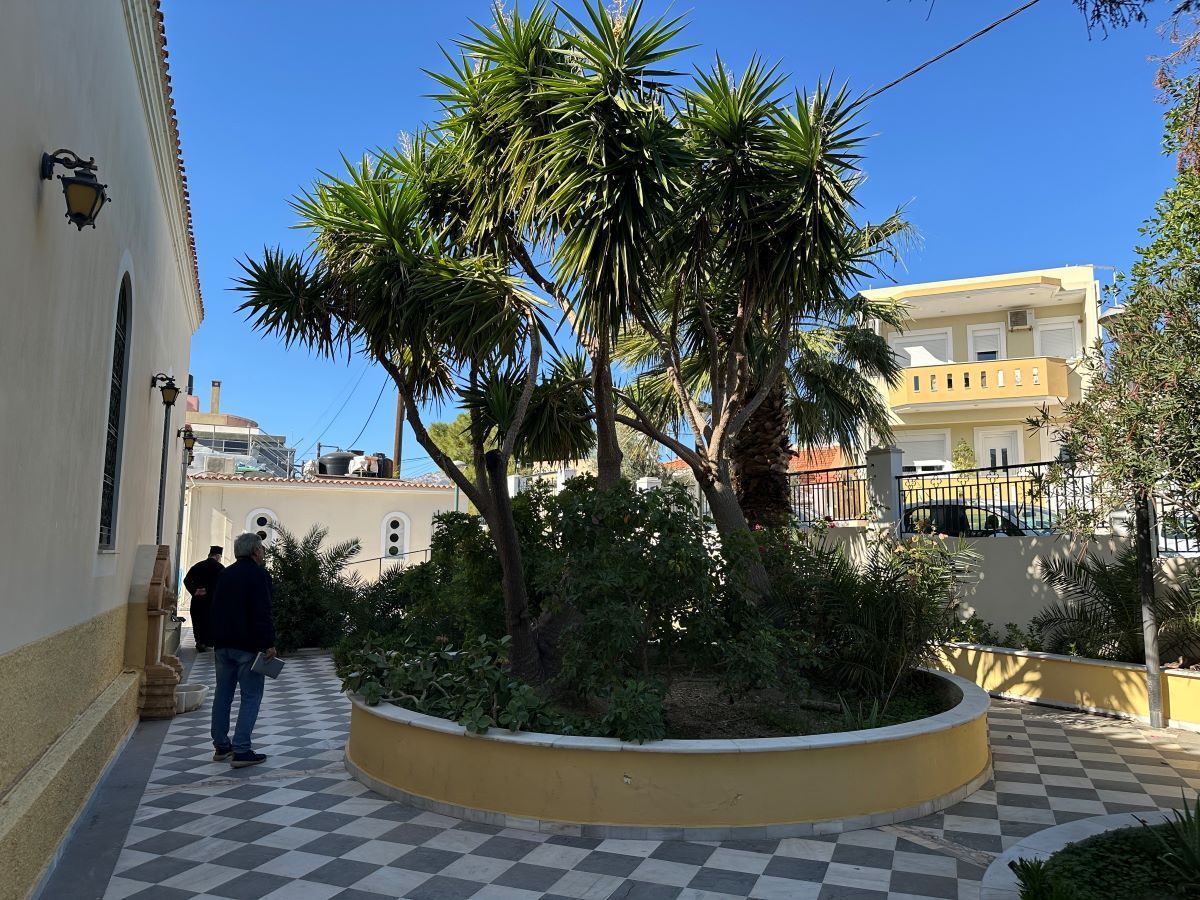 Στην αυλή του Ναού υπάρχει προσεγμένη πρασινάδα, την μοναδική ίσως στην περιοχή, που είναι πλημμυρισμένη από οικίες, ενώ το μικρό καμπαναριό του Ναού αντικρύζει τις Μικρασιατικές ακτές, αφού καταφέρει να διαπεράσει τους στύλου και τα σύρματα της ΔΕΗ.