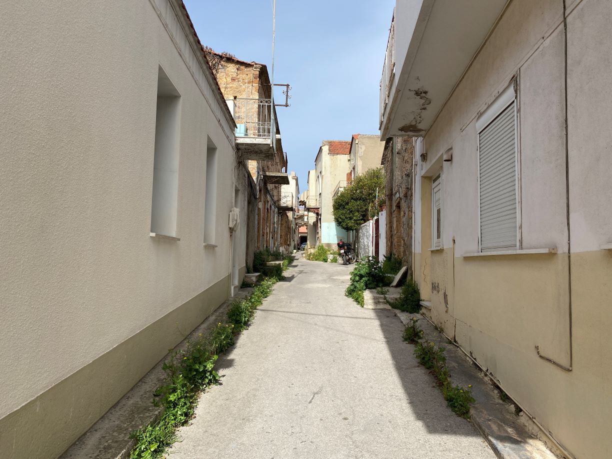 Εκεί ο δρόμος γίνεται στην κυριολεξία… μισός, άρα αδιάβατος και αυτός από Ι.Χ. που είναι ταυτόχρονα και το πλεονέκτημα, η ησυχία δηλαδή, και το μειονέκτημα, η ερήμωση δηλαδή της οδού, όπου τα σπίτια είναι… περικυκλωμένα από στενά διάβα.