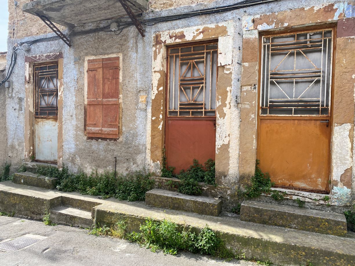 Η οδός αρχίζει με ένα ερείπιο, με το διάλειμμα μιας μόνο οικίας με κήπο, που αντικρύζει απέναντι έξι πανομοιότυπες πόρτες, που κάποτε οδηγούσαν σε διαμερίσματα του πρώτου ορόφου, του απέναντι κτιρίου, που σήμερα όλα μαζί θυμίζουν κάτι από… βιομηχανική περιοχή.