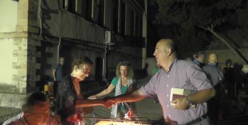 Στην όμορφη και φιλόξενη αυλή αυλή του 1ου Δημοτικού Σχολείου Βροντάδου (που βρίσκεται αντίκρυ στον Άγιο Γιώργη και το Φαφαλιείο Στάδιο), οι Εκδόσεις '' Άλφα Πι '' και ο Φιλοπρόοδος Όμιλος Βροντάδου, πραγματοποίησαν την Τετάρτη 10 Ιουλίου 2019 στις 8 .00 μ.μ. την παρουσίαση του βιβλίου της Εκπαιδευτικού και Δασκάλας, Αργυρώς (Ριρώ όπως την ξέρουν στο Βροντάδο) Ζαννίκου-Ψώρα, ''Τα εύθυμα της βεγγέρας''.