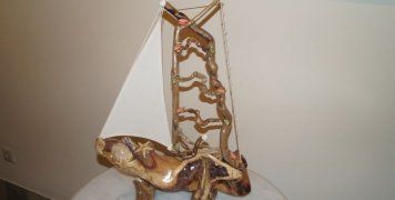 Έργα της εκθέτει μέχρι και τις γιορτές στο Ίδρυμα Τσάκου η καλλιτέχνιδα Γαλάτεια Τελλή, χρησιμοποιώντας σαν βασική ύλη ξύλα που έχει ξεβράσει η θάλασσα. Η ίδια ομολογεί με ότι δεν ξέρει τι είναι εκείνο που την κάνει να θέλει να μεταμορφώσει ένα ξύλο σε καραβάκι. “Η θάλασσα μιλάει μέσα μας”, λέει, “γυρίζω ατέλειωτες ώρες τις παραλίες ψάχνοντας τέτοια ξύλα. Ένα ξύλο βγαλμένο από το ξυλουργείο ή από κάπου αλλού δεν μου λέει τίποτα”. Μετά φτιάχνει, πάλι με τα χέρια της, ράβοντάς τα, πανιά και το αποτέλεσμα είναι αξιοζήλευτο. Δεν έχετε παρά να πάρετε μια γεύση στο Ίδρυμα Τσάκου. Αυτή είναι η 10η έκθεση έργων της Γαλάτειας Τελλή.